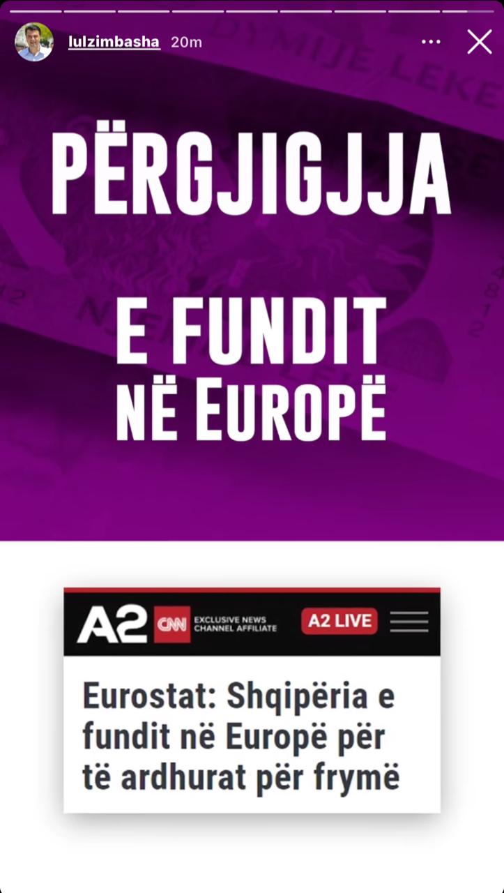 Kreu i PD, Lulzim Basha, ka publikuar në Instagram, sipas tij një tjetër dështim të Ramës.
