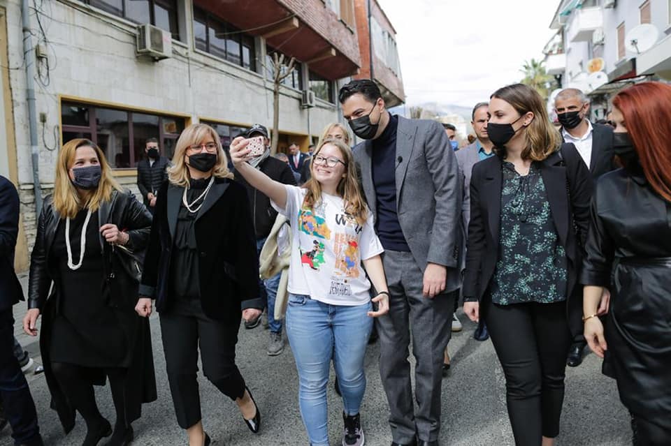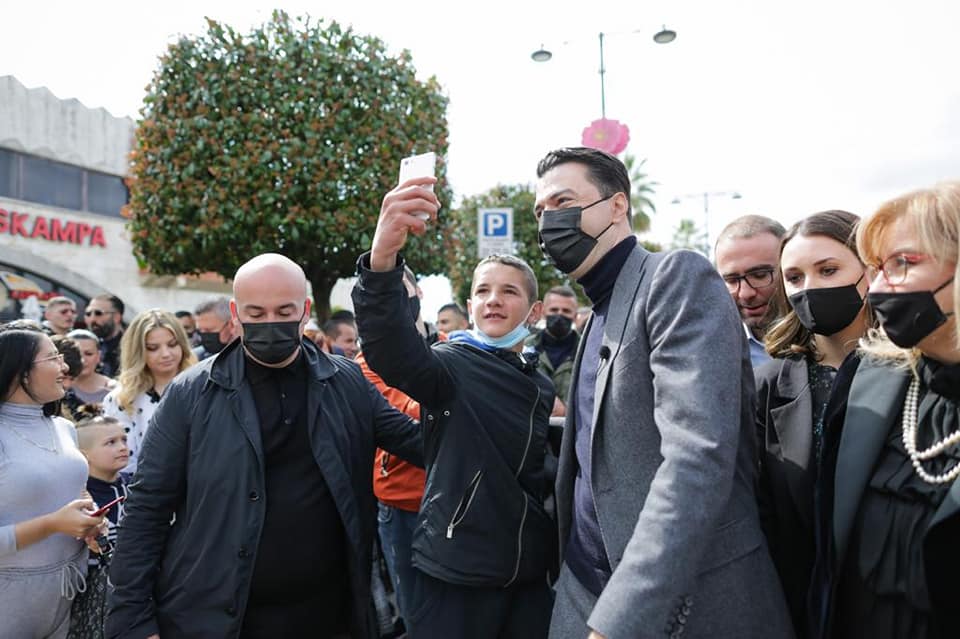 Siç shihet në fotot e publikuara nga kryedemokrati, një vajzë i vendos në dorë verore, ndërsa dy fëmijë të tjerë, i kërkojnë të bëjnë foto.