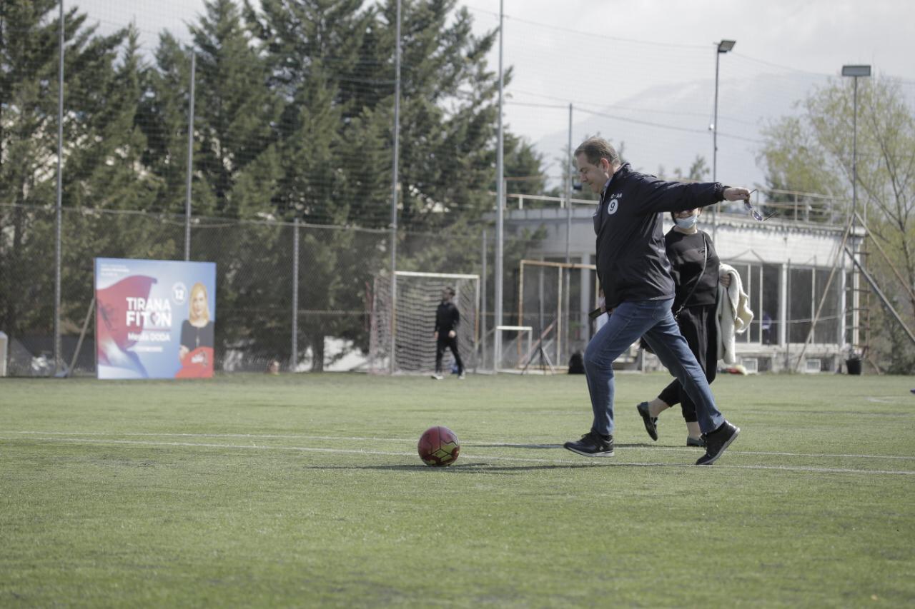 Larg kostumit politik, i veshur sportiv, Idrizi u rreshtua edhe vetë në fushën e lojës.