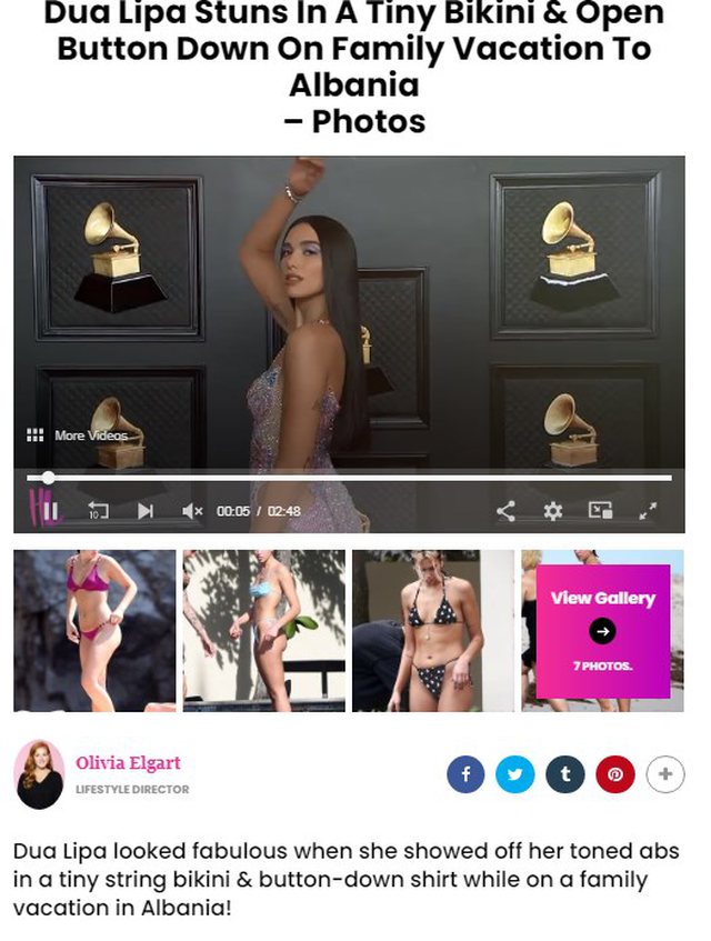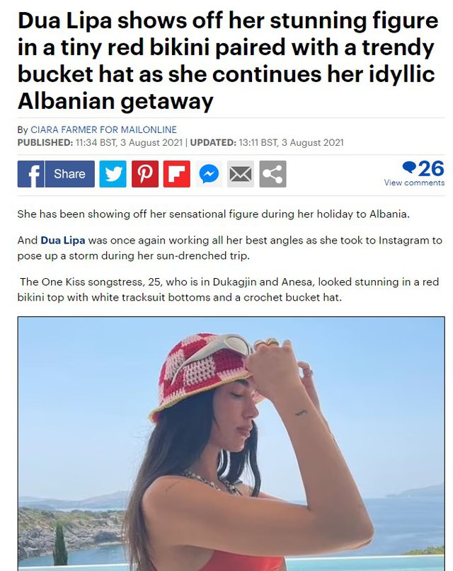 Hollywood life ka shkruar për fotot ku Dua shfaqet me bikini ndërsa një tjetër media e huaj FreshHeadline shkruan se këngëtarja ka ndarë foto nga një vend piktoresk si Shqipëria.