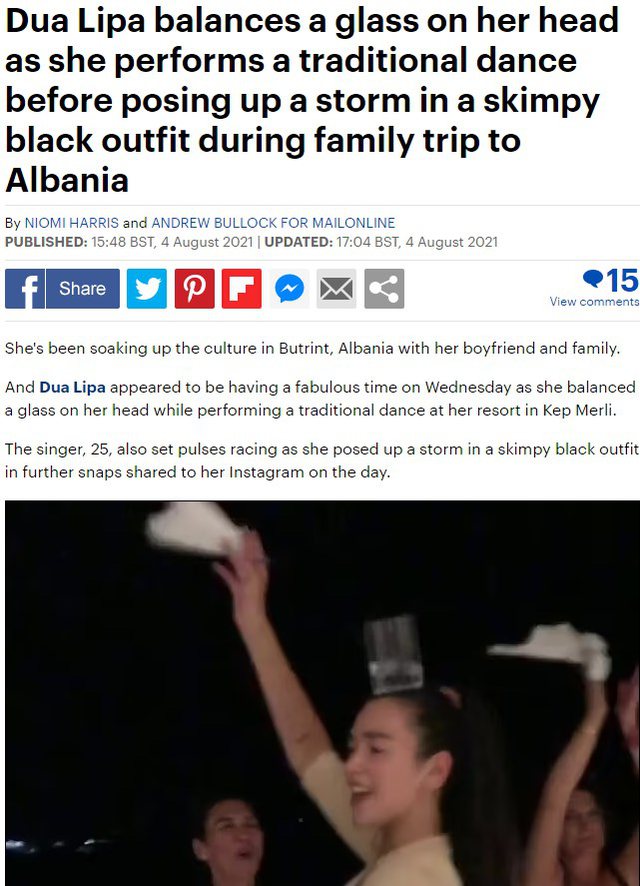 Daily Mail i ka kushtuar një artikull këngëtares shqiptare, për videon ku shfaqej duke kërcyer valle tradicionale gjatë pushimeve të saj në jug të Shqipërisë.