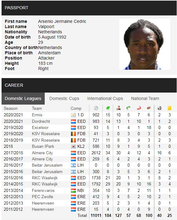 Valpoort ka luajtur në elitën e futbollit holandez dhe në ligën e sytë, sikurse edhe në Belgjikë, Izrael, Hungari me Ferencvaros, si dhe në Kore.