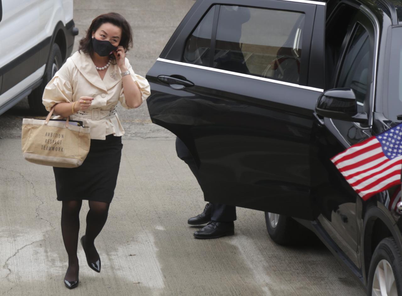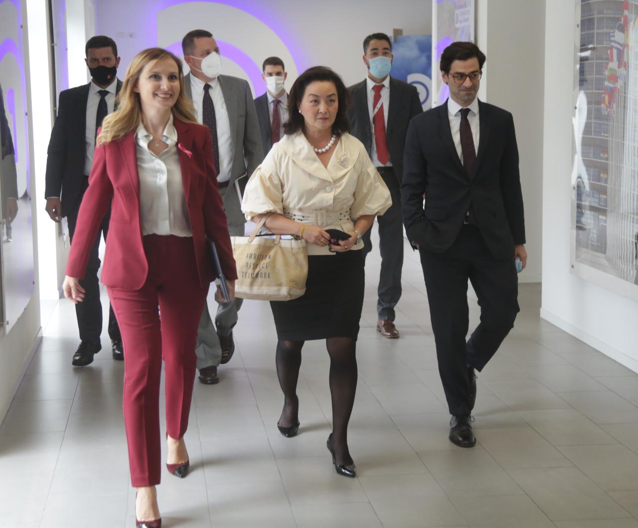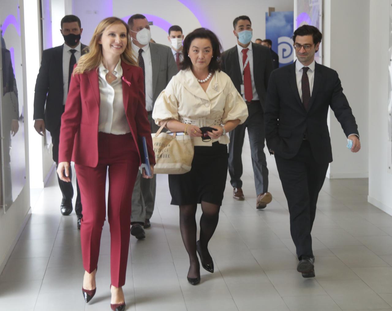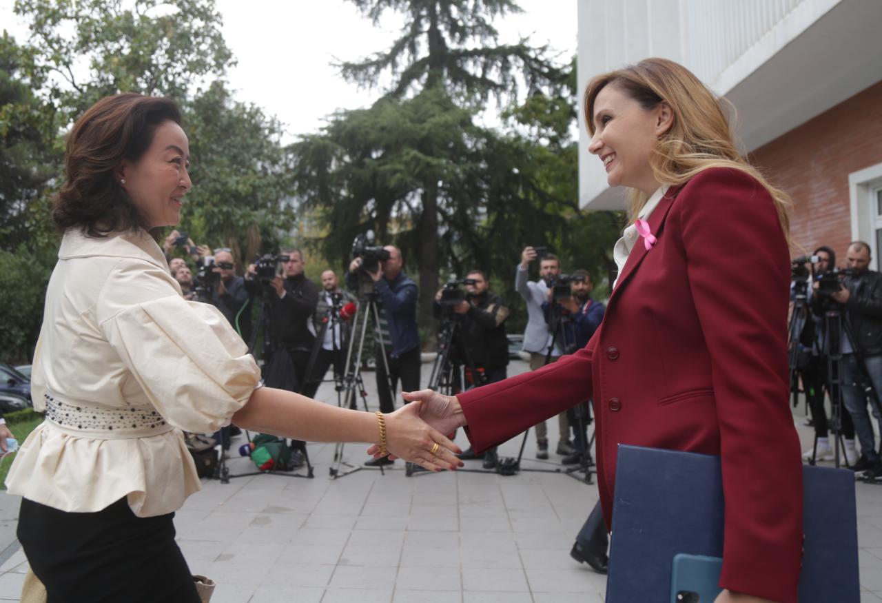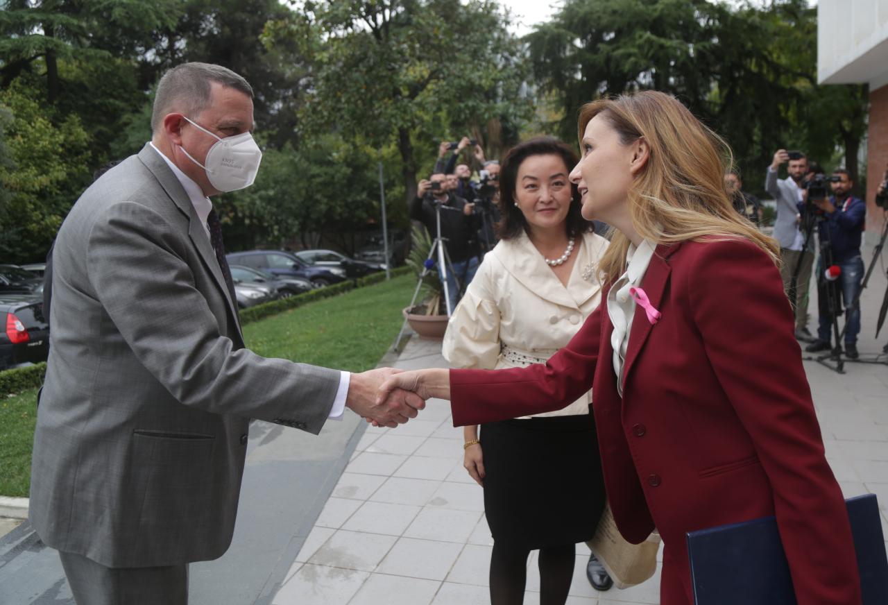 Ka qenë nënkryetarja e PD, Jorida Tabaku ajo që i ka pritur jashtë selisë e më pas e ka shoqëruar ambasadoren Kim dhe delegacionin amerikan në ambientet e brendshme të selisë blu.
