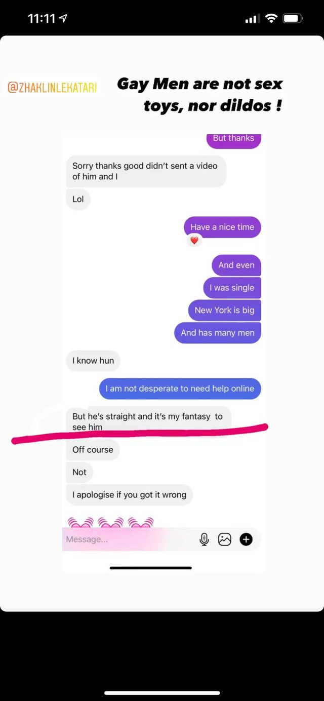 Biznesmeni ka dënuar këtë sjellje dhe ka deklaruar se meshkujt gay nuk janë lodra seksi për të përmbushur fantazitë perverse seksuale të çifteve jo gay dhe shprehet se është kategorikisht kundër orgjive dhe tradhtive bashkëshortore!