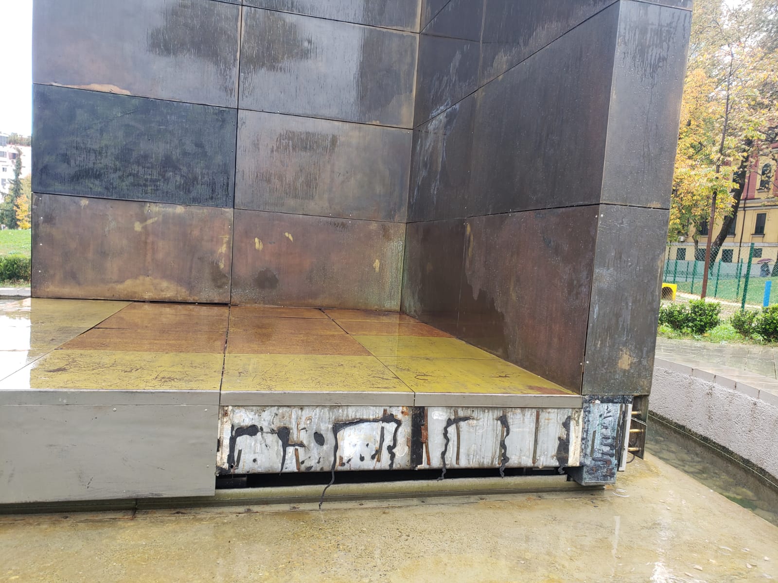 Nga fotografitë e monumentit që ndodhet në “Parkun Rinia” përgjatë bulevardit, shquhet se mungojnë disa nga pllaka.