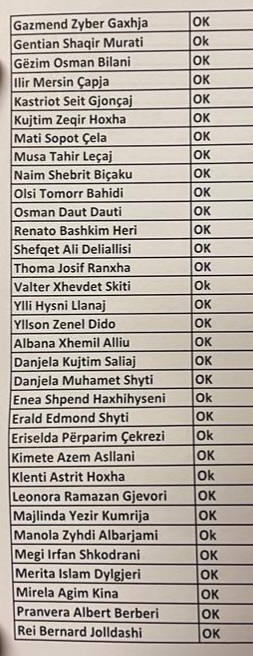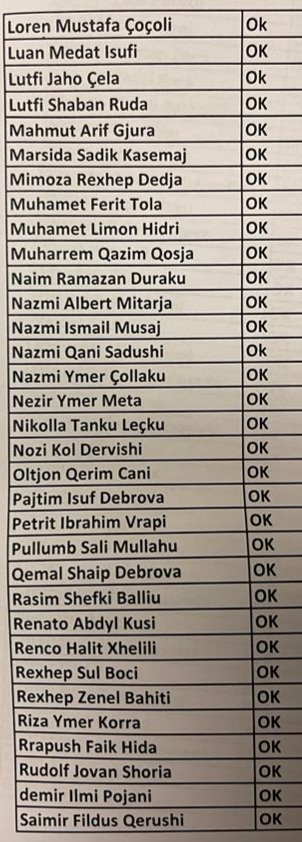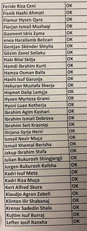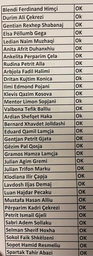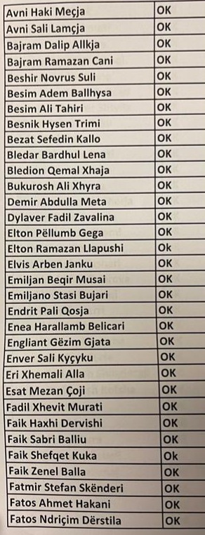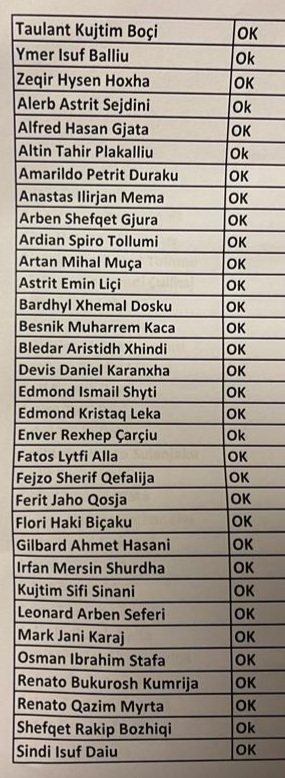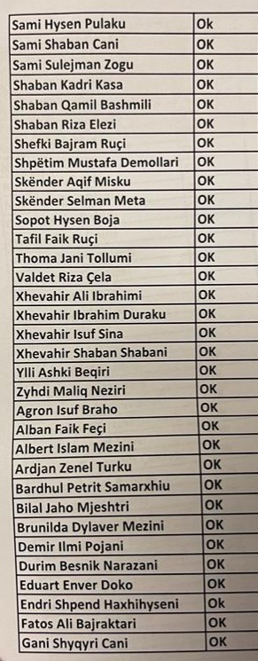 Emrat e delegatëve që kanë firmosur për mbledhjen e Kuvendit Kombëtar të PD-së më 11 Dhjetor