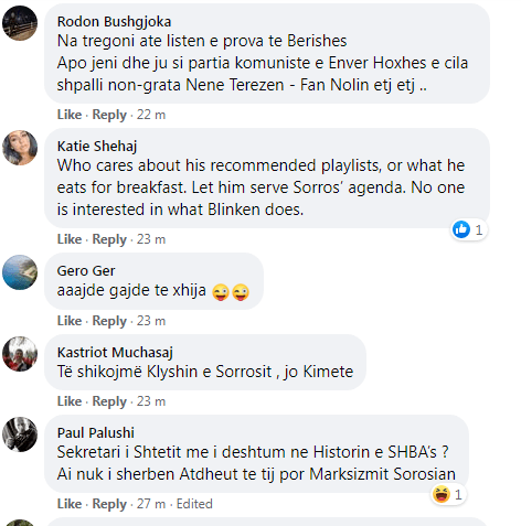 Ndërkohë, të tjerë qytetarë e quajtën sekretarin Blinken dhe ambasadoren Kim “njerëz të Sorosit”.