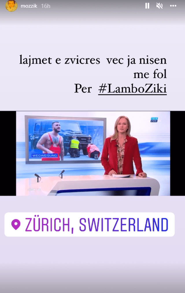 Në një tjetër Instastory, Mozzik ka postuar edhe raportimin në një prej televizioneve zviceriane.