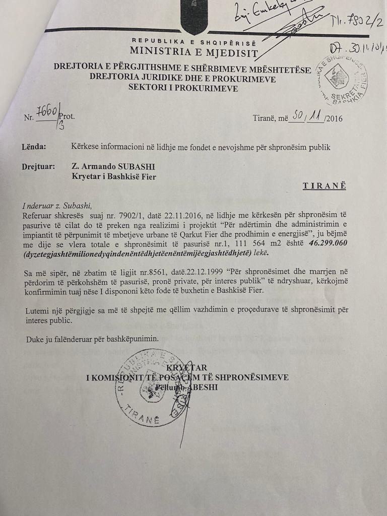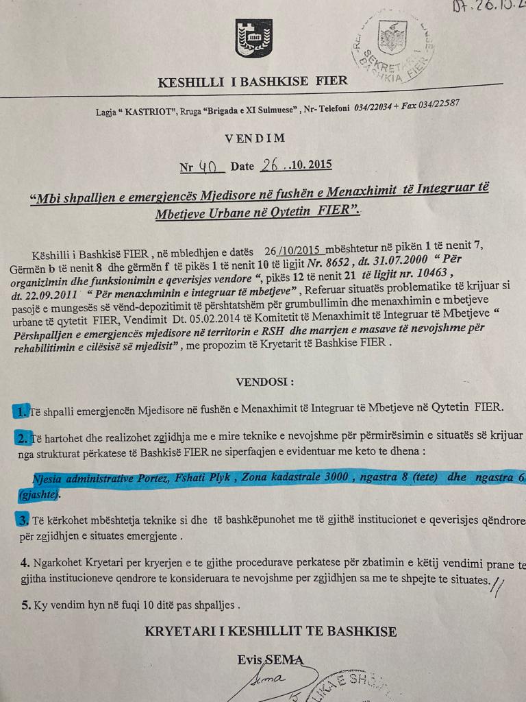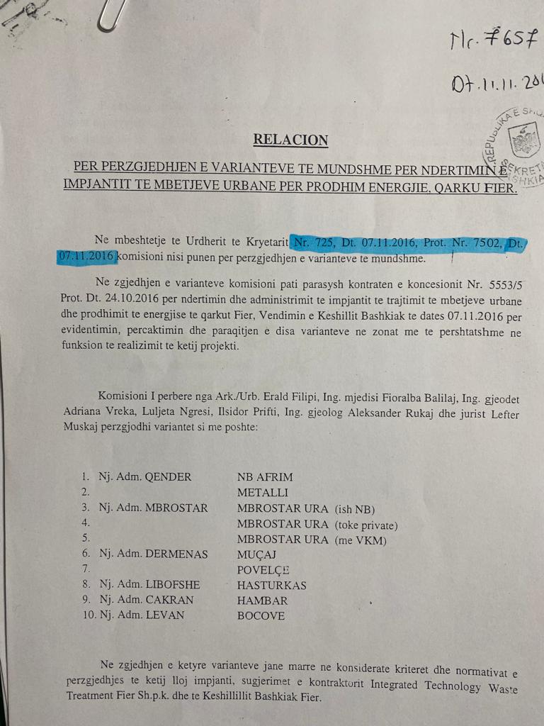 Dokumentat tregojnë se prona e vendosur fillimisht nga vendimi i Këshillit Bashkiak Fier në vitin 2015 ishte në fshatin Plyk pa pasur në plan ndërtimin e një incineratori.