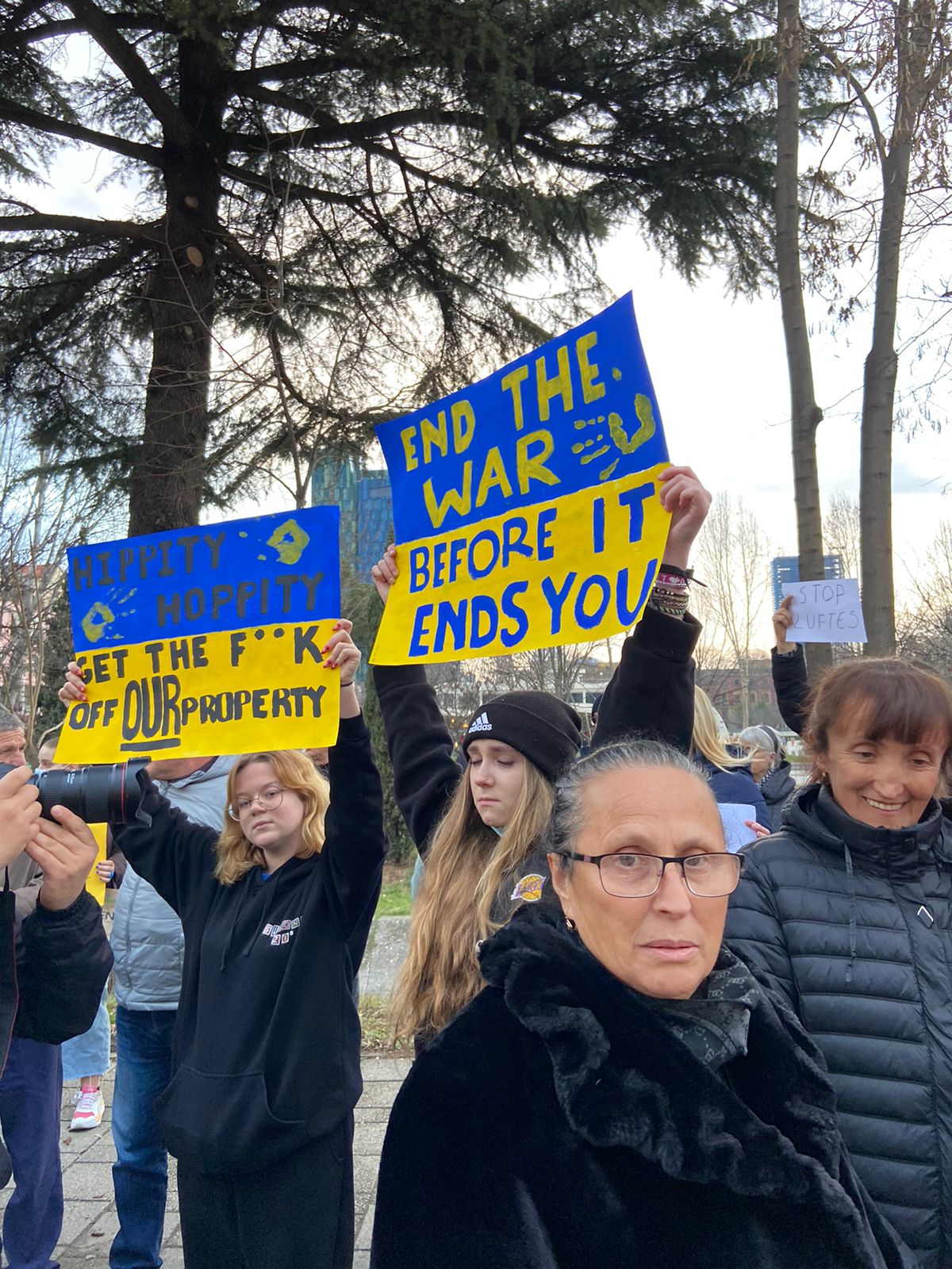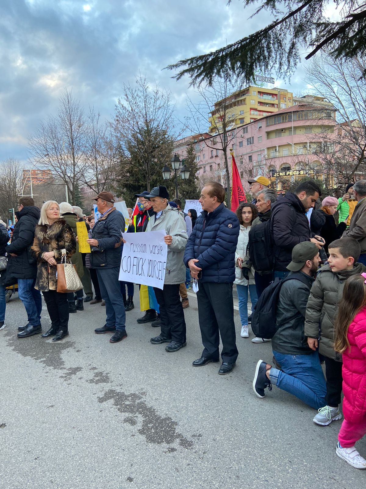 “Ukraina do fitojë”, “Putin hitler”, “I stand with Ucraine”, ishin disa nga thirrjet e qytetarëve.