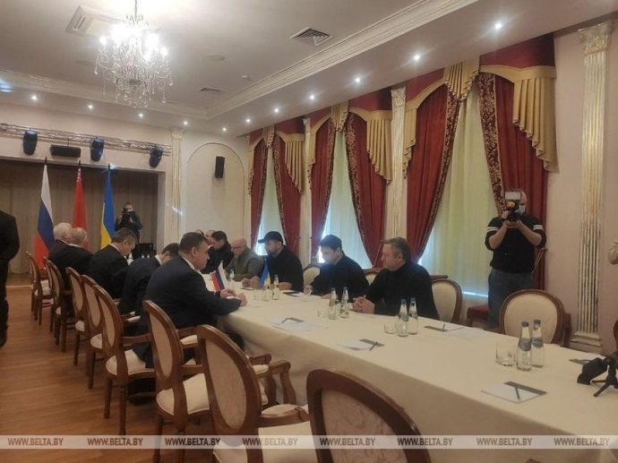 Në media janë publikuar pamje nga takimi mes zyrtarëve rusë dhe atyre ukrainas, të cilët takohen për të diskutuar konfliktin lidhur me konfliktin, në kufirin Ukrainë-Bjellorusi.