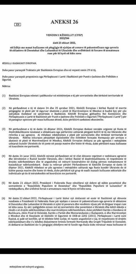 Doktor mirmbrema. Turp me te madh se Kryeministri qe thote “protestuesit Jane turp se protestojne kur ne Ukrahine behet lufte” nuk ka. Quan turp popullin qe proteston per cmimet, e nga ana tjeter bashkepunon me Ruset. Kishte mbi 10 dite nje anije Ruse e ndaluar nga cdo Port i europes te ankorohej qe rrinte ne ujrat nderkombetare e tashme e pranuan te hy ne portet shqiptare. Franca e rrefuzoi ( https://www.maritime-executive.com/…/french-navy… ) ne e pranuam. Dhe nje nga kompanite me te listuara per embargo, ( https://www.spisok-putina.org/en/personas/fradkov-4/ ) nderkohe qe KM e batonovici thone turp ju qe protestoni kundra ukrahines, por nga ana tjeter bashkepunojne me Rusin. Spak duhet te hetoj, si Jane lejuar te procedojne institucionet Shqiptare qe Kane lejuar kete anije te hy, kur drejtoria e doganave ka shperndare buletinin e fletores zyrtare te Bashkimit Europian per embargon e subjektet e ndaluara. Japin urdher te fusin anijen, po’ nuk mbajne asnje pergjigjesi e nuk firmosin asnje shkrese, por vec urdherojne me goje. Doktor turp eshte km qe qan per Ukrahinen e bashkepunon me Rusin, Jo populli qe proteston. Me poshte Jane foto e anijes, dhe fletorja zyrtare e Bashkimit Europian per te gjitha subjektet Ruse qe doganat duhet te ndalojne