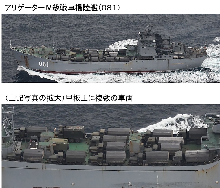 Katër anije të mëdha luftarake ruse janë parë duke lundruar pranë ishujve japonezë Honshu dhe Hokkaido ndërsa udhëtonin në perëndim, ndoshta drejt Evropës, raporton Reuters. Lajmi është bërë me dije nga ministria e Mbrojtjes së Japonisë e cila ka publikuar foto të anijeve që po kalonin.