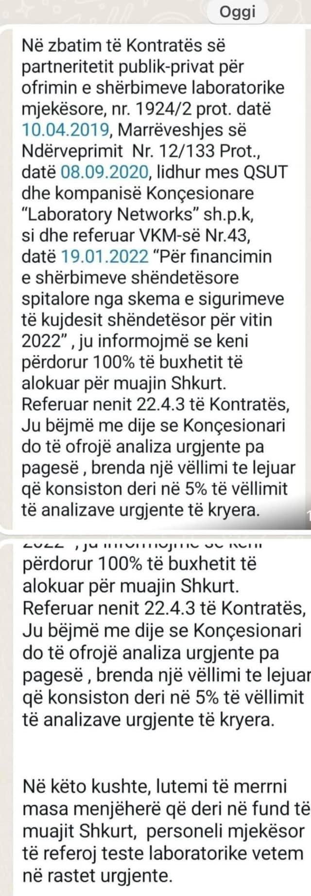 Muajin e kaluar me nje urdher te tille u ndaluan per reth 10 dite analizat laboratorike te pacienteve te shtruar ne spitale, se….kishin mbaruar fondet.