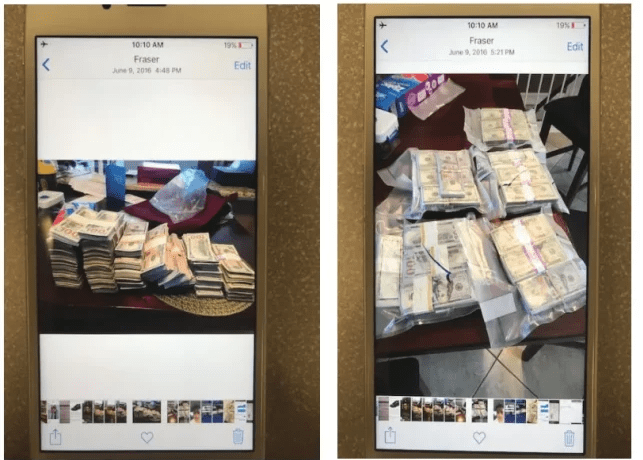 Të nesërmen në hotel, Didani ka fotografuar në celularin e tij një foto tjetër ku shfaqen më shumë se 190 pako në formë drejtkëndëshe që ngjasojnë me kilogramët e kokainës, shkruan prokurorët. Dy ditë më vonë, më 21 dhjetor, një bashkëpunëtor fluturoi në Uashington me aeroplanin privat të Tibbitts për t’i dhënë Didanit rreth 450,000 dollarë, sipas aktakuzës. Paratë u përdorën për të paguar kokainën me shumicë.
