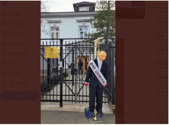 Së fundmi, në shenjë proteste kundër luftës në Ukrainë, një grup qytetarësh kanë vendosur një kukull “Putin” të varur përpara ambasadës rusë ne Oslo.