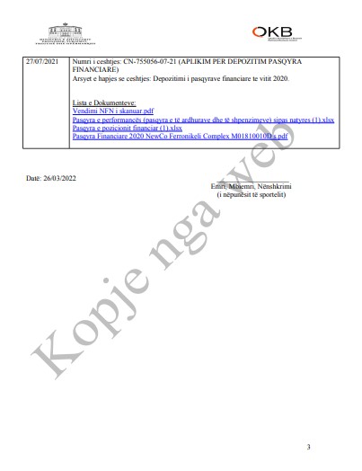 “Njoftim fituesi, shoqërisë, “NewCo Ferronikeli Complex” SH.P.K. Adresa e kompanisë është në rrugën “Papa Gjon Pali II”, Tiranë. Nr.i Referencës, zona minerare nr. 364/4, për objektin Leshnica, Qarku Kukës, lloji mineralit hekur – nikel, veprimtaria shfrytëzim, e miratuar në planin vjetor minerar të vitit 2014” shkruan ministria, ndërsa lajmëron shoqërinë “NewCo Ferronikeli Complex”, se “oferta e paraqitur më datë 27 janar 2022, për përfitimin e të drejtës për aplikimin për leje minerare në zonën minerare nr. 364/4, për vlerën totale të investimit prej 200 000 000 lekë dhe sasinë e prodhimit të mineralit hekur – nikel 100 000 [njëqind mijë] ton/vit, është pranuar si ofertë e suksesshme në procedurën e konkurrimit për të drejtën e aplikimit për leje minerare në zonën minerare konkurruese nr. 364/4”.