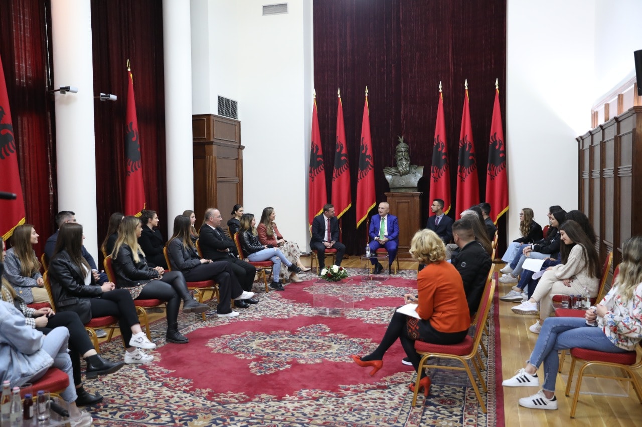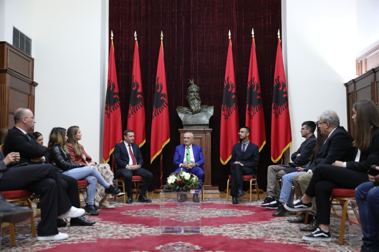 Presidenti Ilir Meta ka mirëpritur në një takim në Presidencë, studentë të Universitetit të Durrësit.