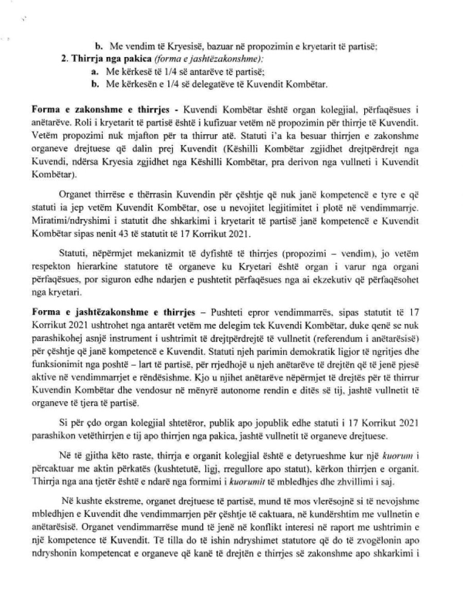 Të gjithë vendimet e Kuvendit Kombëtar, të cilat sipas ligjit për Partitë Politike hyjnë në fuqi menjëherë pas miratimit, tashmë kanë marrë fuqi ligjore me vendim gjyqësor.