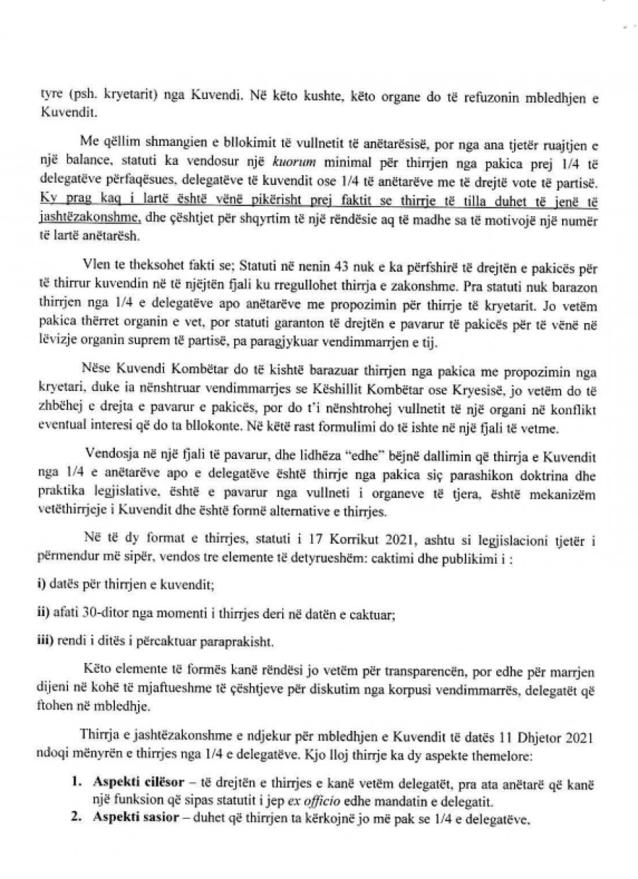 Në bazë të dokumentacionit të konsultuar, ka arritur në përfundimin se numri i tyre tejkalonte minimumin e kërkuar nga Statuti për të thirrur Mbledhjen e Jashtëzakonshme të Kuvendit.