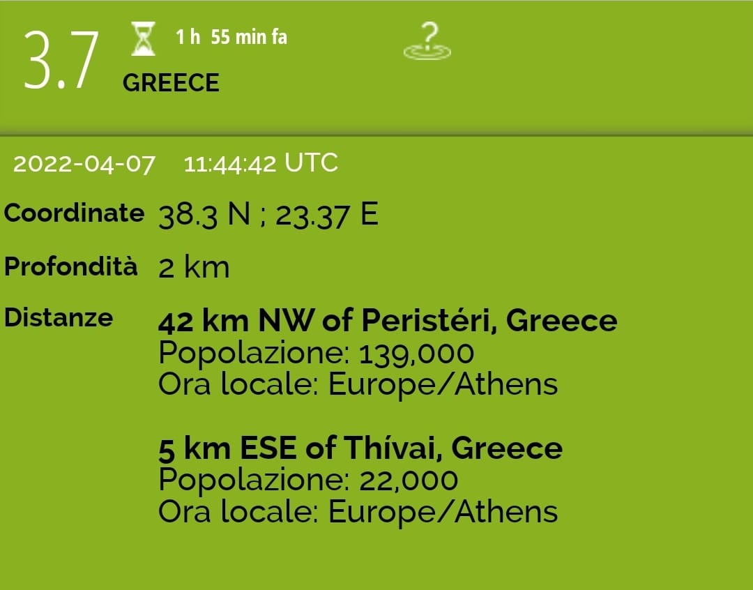 Tërmeti më i fundit ka qenë me magnitudë 3.7 po në Thivai.
