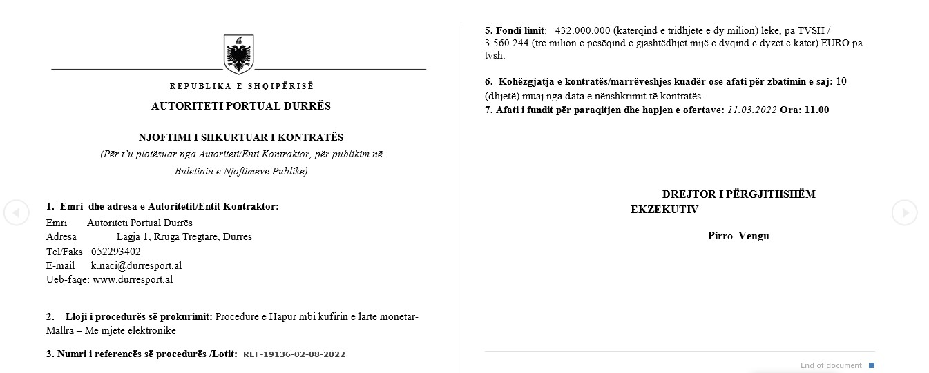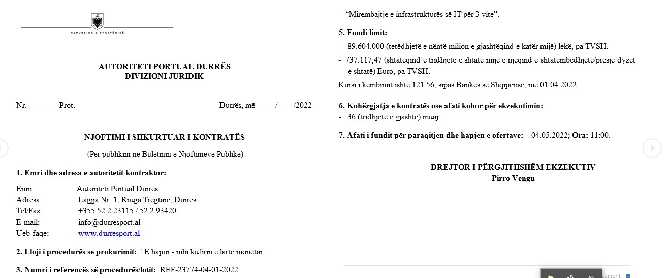 • Autoriteti Kontraktues: Autoriteti Portual Durres