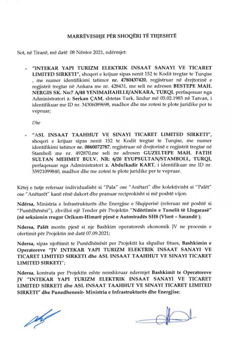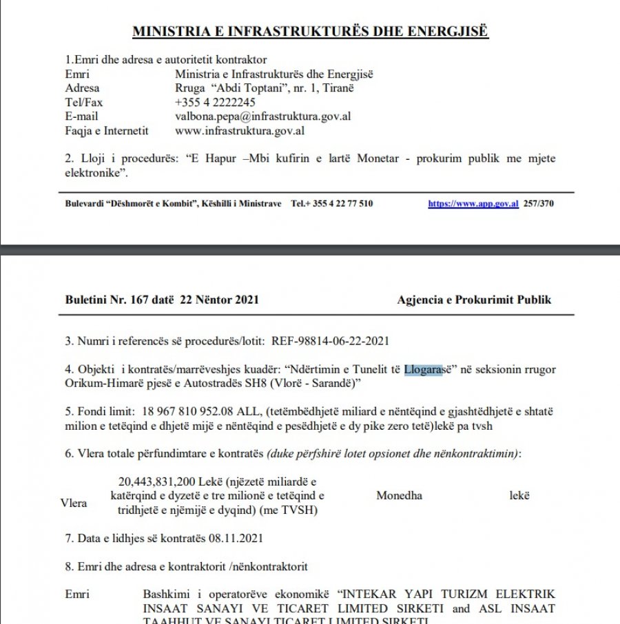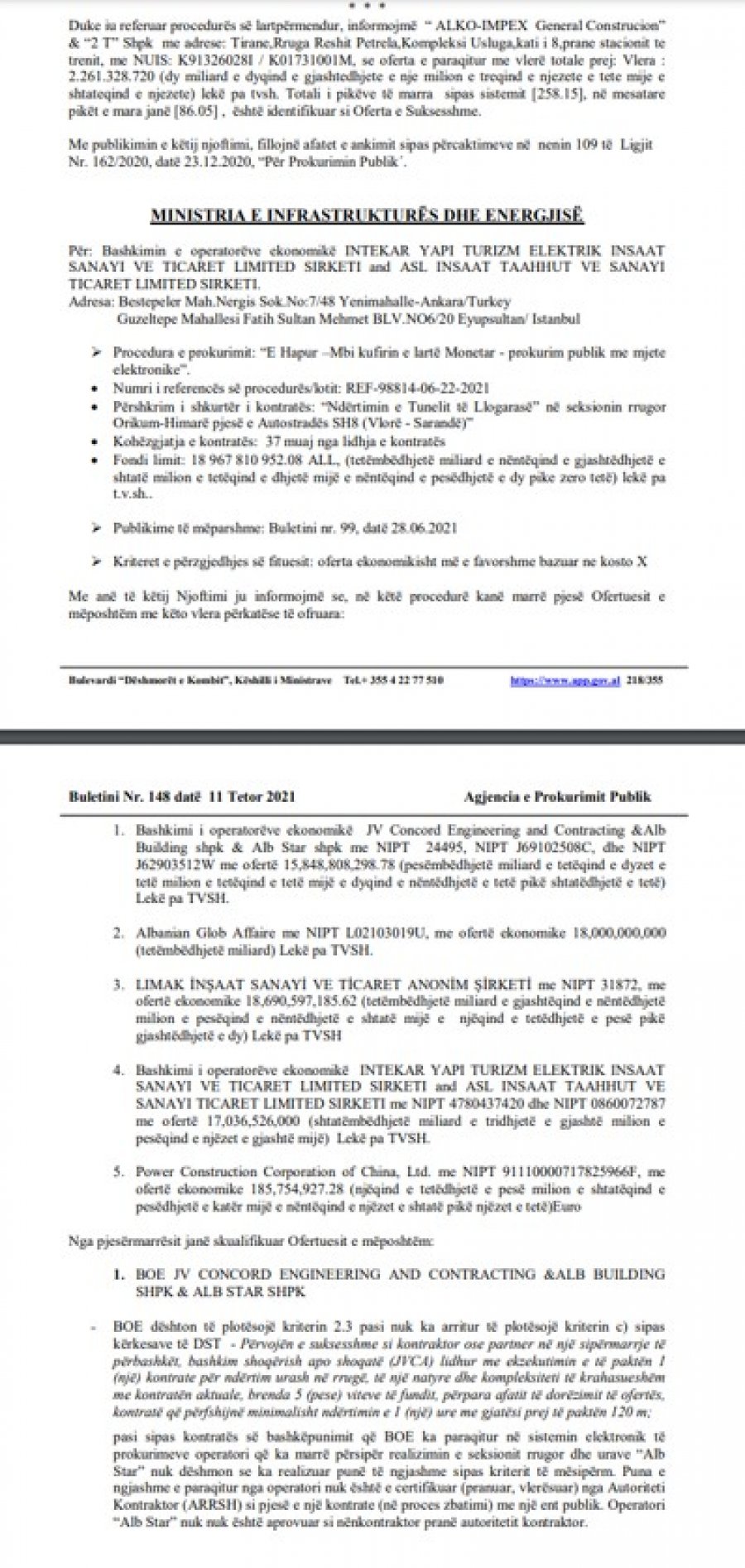 Ministria e Infrastrukturës njoftoi zyrtarisht në tetor 2021, te fitues i zbatimit të projektit që lidh Vlorën me Palasën ishte shpallur bashkimi i konsorciumit turk: