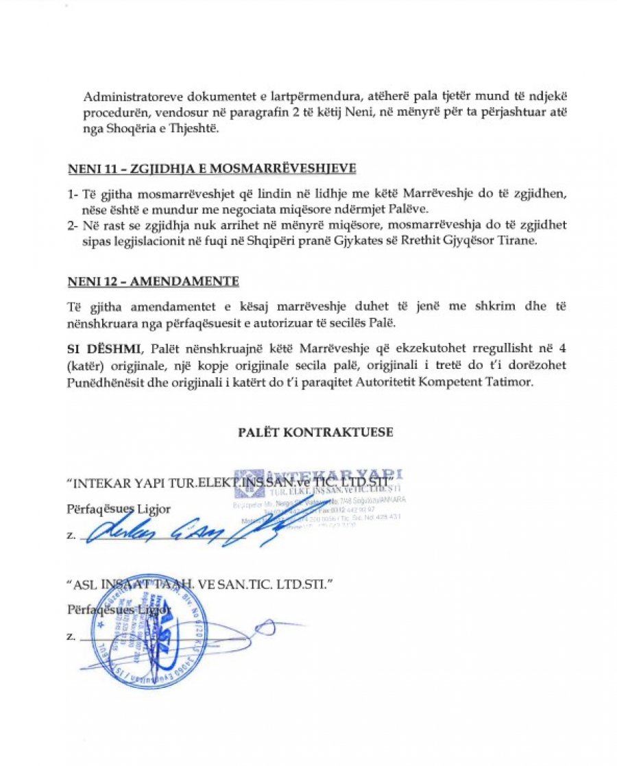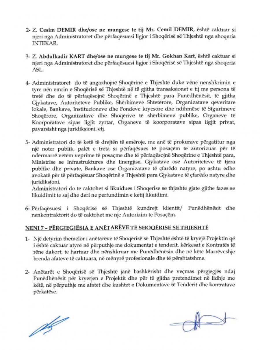 – INTEKAR YAPI TURIZM ELEKTRIK INSAAT SANAYI VE TICARET LIMITED NIPT 4780437420 (regjistri i biznesit ne Stamboll)