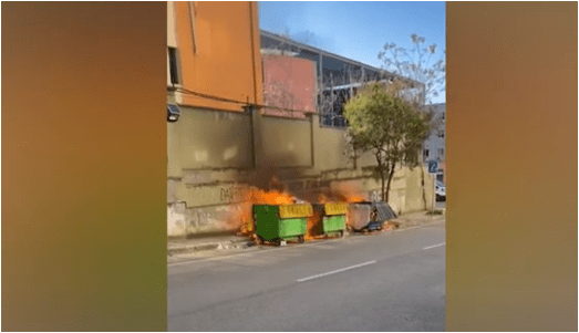 Flakët e zjarrit kanë përfshirë disa kosha mbeturinash para Prokurorisë së Posaçme kundër Korrupsionit dhe Krimit të Organizuar.