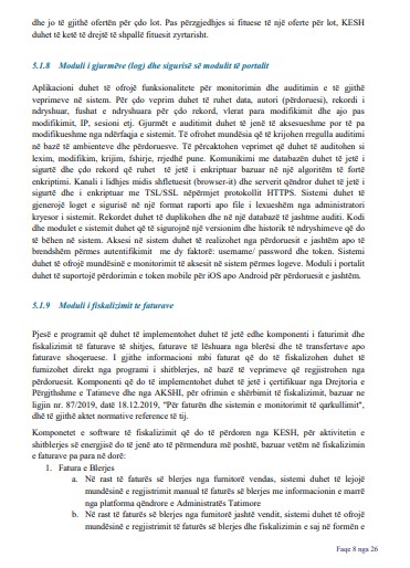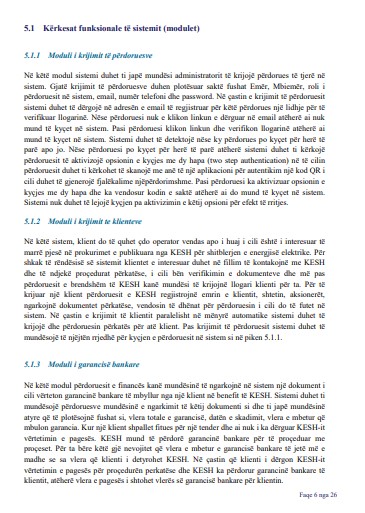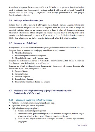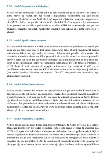 Sipas saj, më konkretisht, nëpërmjet një programi modular softëare do të mundësohet digjitalizimi dhe automatizimi i procesit të shitblerjes që nga momenti i publikimit të procedurave tenderuese të shitjes dhe blerjes së energjisë elektrike nga ana e KESH, ku të gjithë operatorëve vendas apo të huaj tu mundësohet të japin ofertat e tyre për këto procedura, marrjen e ofertave online nëpërmjet programit, gjenerimin e faturave financiare, ekzekutimin e tyre në përputhje me regjimin tatimor, fiskalizimi i faturave dhe arkëtimet e transaksioneve, regjistrimi i të gjitha të dhënave të transaksioneve financiare në këtë program.