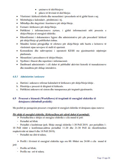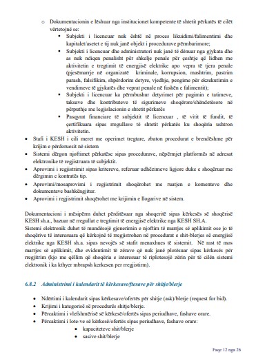 Ky proces është shumë i shpeshtë brenda javës/muajit, pasi edhe nevoja për energji elektrike nga FSHU sh.a është e ndryshueshme në varësi të konsumit të vendit. Në kushtet e mësipërme dhe ku prioritet ka sigurimi i energjisë elektrike me kosto sa më të ulët është e nevojshme që procesi i blerjes së energjisë elektrike të bëhet me sistem elektronike, kjo me qëllim kapjen në kohë më të shpejtë të sinjaleve të tregut të energjisë elektrike si dhe rrjedhimisht uljen e kostove për blerje energjie elektrike” thuhet në dokumente.