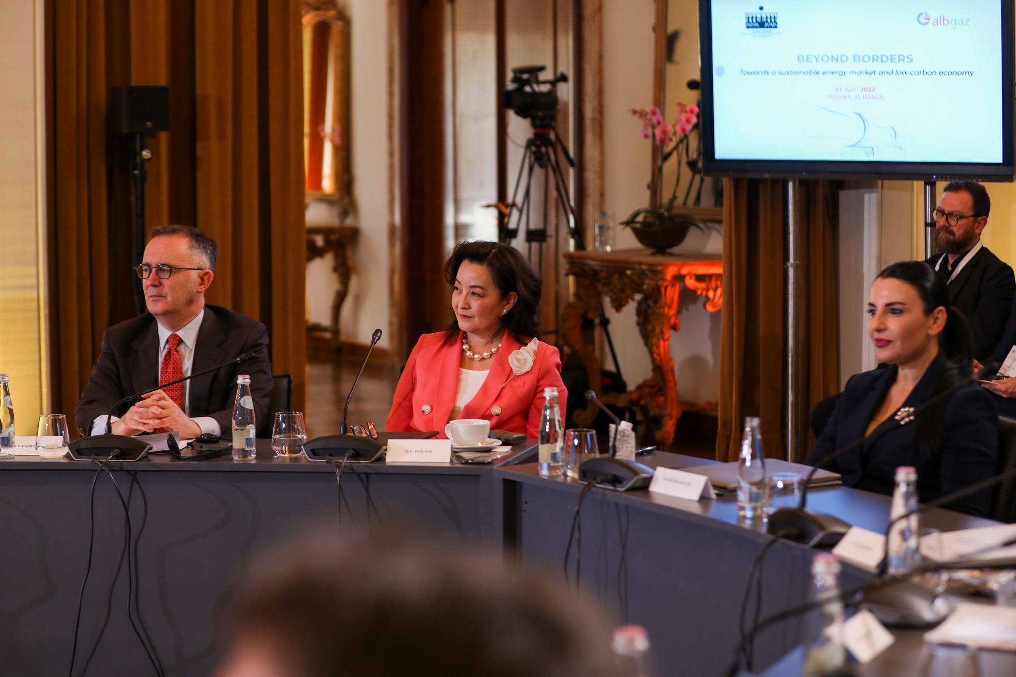 Ambasadorja e Shteteve të Bashkuara Yuri Kim iu bashkua kompanive amerikane Excelerate dhe Exxon, si dhe partnerëve, udhëheqësve të sektorit energjitik dhe ortakëve nga vende të ndryshme të Ballkanit Perëndimor, Bashkimi Europian dhe më tej, në konferencën rajonale “Përtej Kufijve: Drejt një tregu energjie të qëndrueshme dhe ekonomie karboni të ulët”, organizuar nga Albgaz dhe Ministria shqiptare e Infrastrukturës dhe Energjisë.