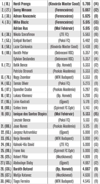 Pas Uzunit, një tjetër futbollist shqiptar shkëlqen në elitën e futbollit hungarez. Herdi Prenga ka marrë vlerësimet më të larta për sezonin me Kisvarda, me skuadrën që u pozicionua e dyta në kampionat dhe siguroi një vend në Conference League.