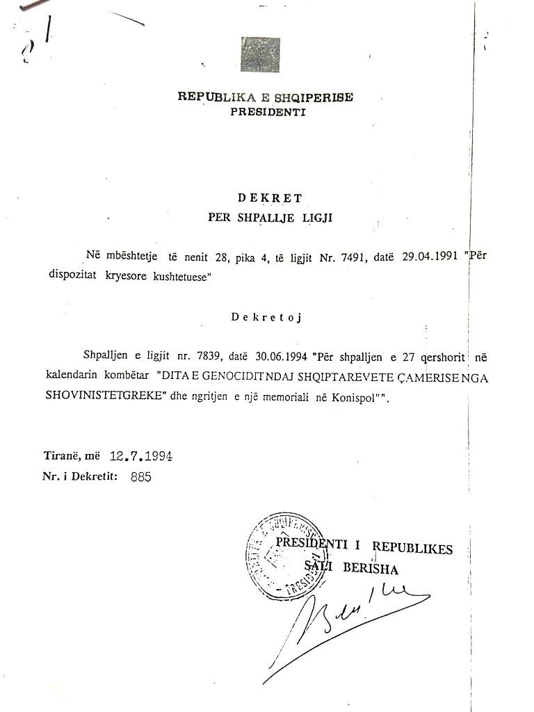- Heqjen e “Ligjit të Luftës” që Greqia mban në fuqi me Shqipërinë që nga viti 1940, pra që nga Lufta e Dytë Botërore dhe akteve nënligjore që do t’i hapnin rrugë, problematikave pronësore për shtetasit shqiptarë të Çamërisë dhe më gjerë.