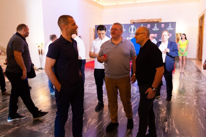 Federata Shqiptare e Futbollit ka organizuar sot një drekë me miqtë e ardhur me rastin e finales së Conference League, duke filluar që nga Presidenti i UEFA-s, Alexander Ceferin, zyrtarë të lartë të qeverisë së futbollit europian, presidentë federatash, drejtues dhe legjenda të klubeve finaliste, Roma dhe Feynoord.