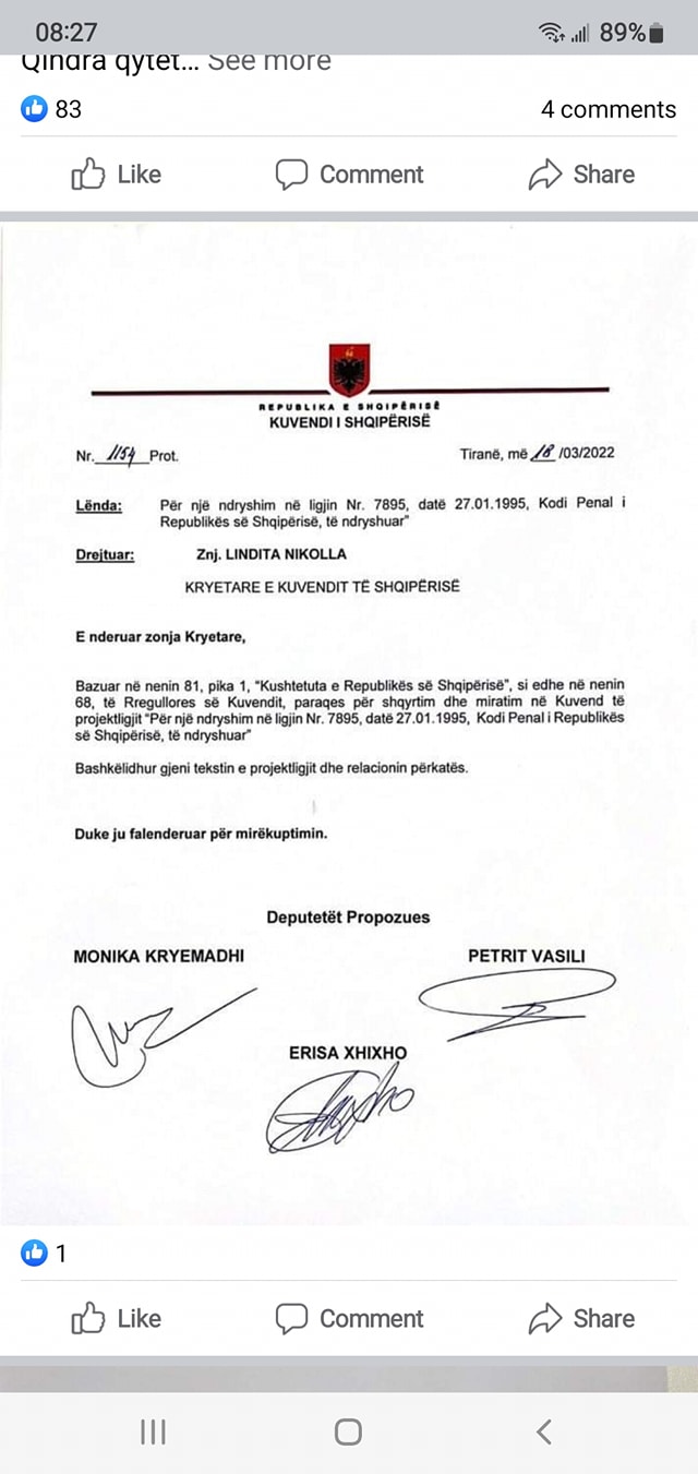 Ju kam kerkuar Zj.Nikolla publikisht, ne seanca plenare, qe ju te perdorni te gjithe autoritetin tuaj per te vene ne levizje sa me pare shqyrtimin e ketyre nismave me interes te larte publik dhe qytetar.