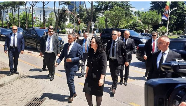 E shoqëruar nga një delegacion nga Kosova, Osmani u prit në hyrje të Presidencës nga Ilir Meta.