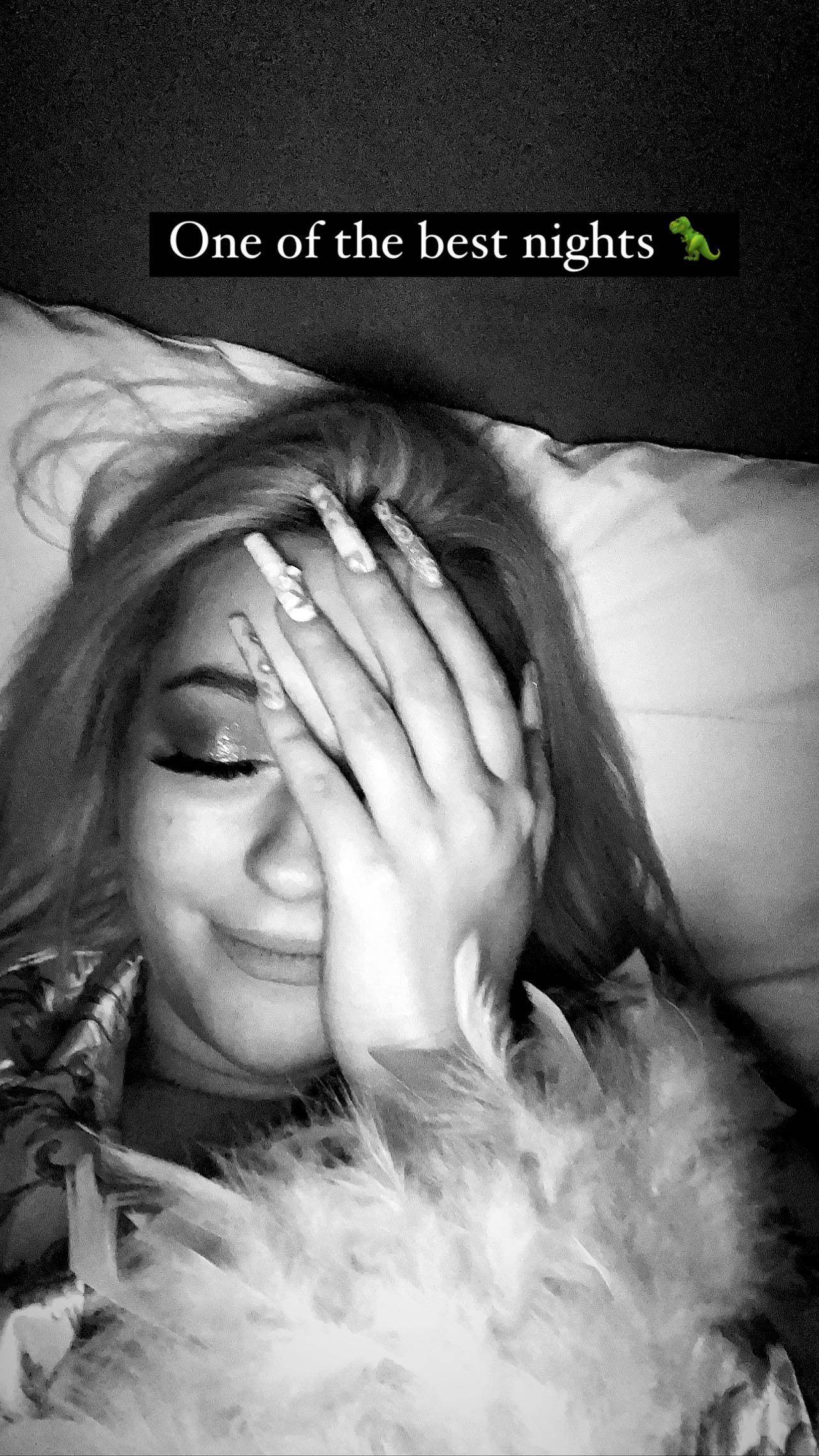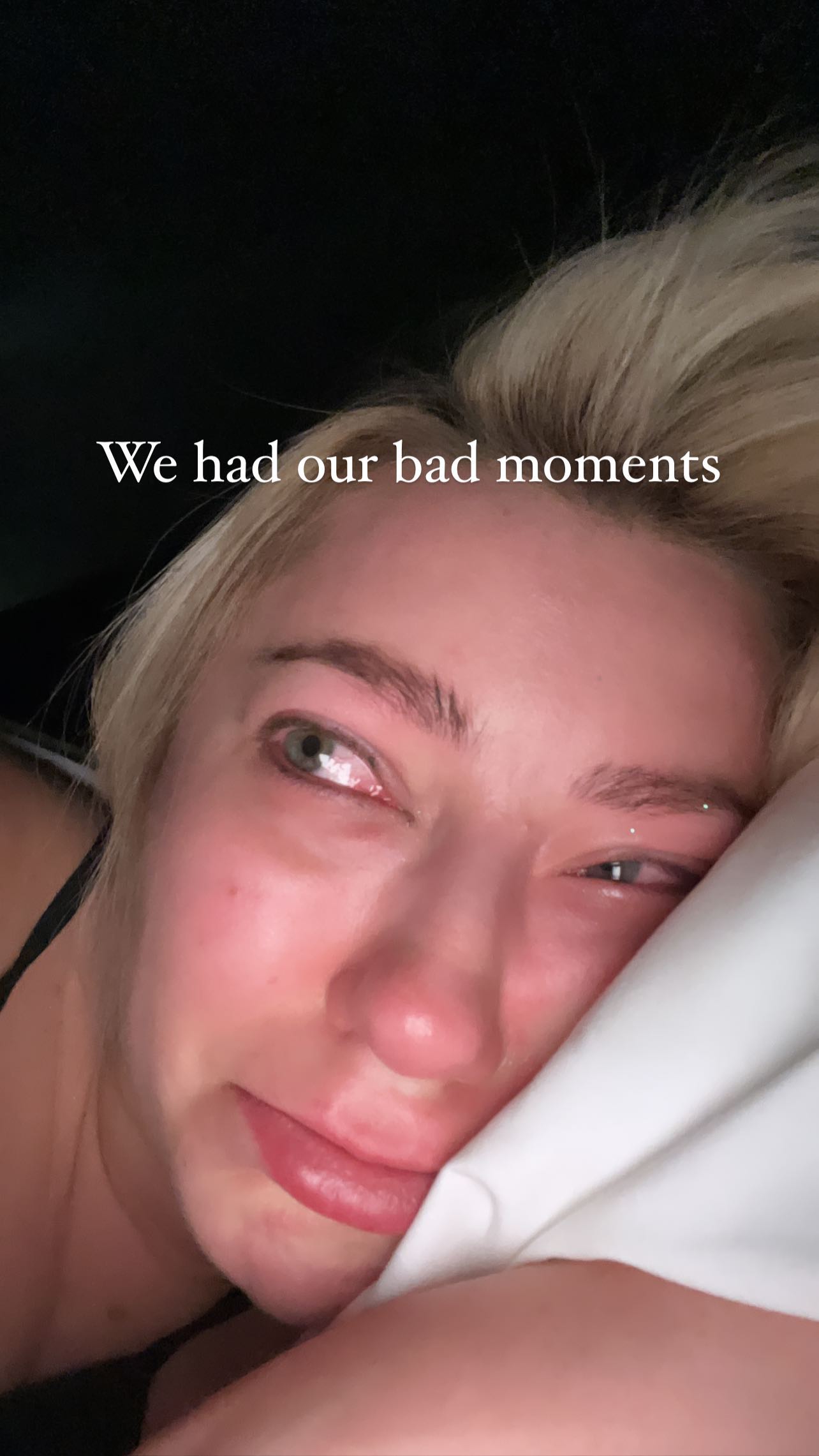 Mes tyre ajo ka ndarë edhe një foto ku shihet në shtrat duke qarë si një nga momentet stresuese që ka kaluar në atë periudhë.