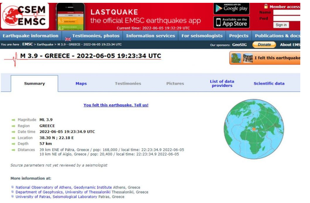 Epiqendra e tërmetit ka qenë pranë zonës së Patras.