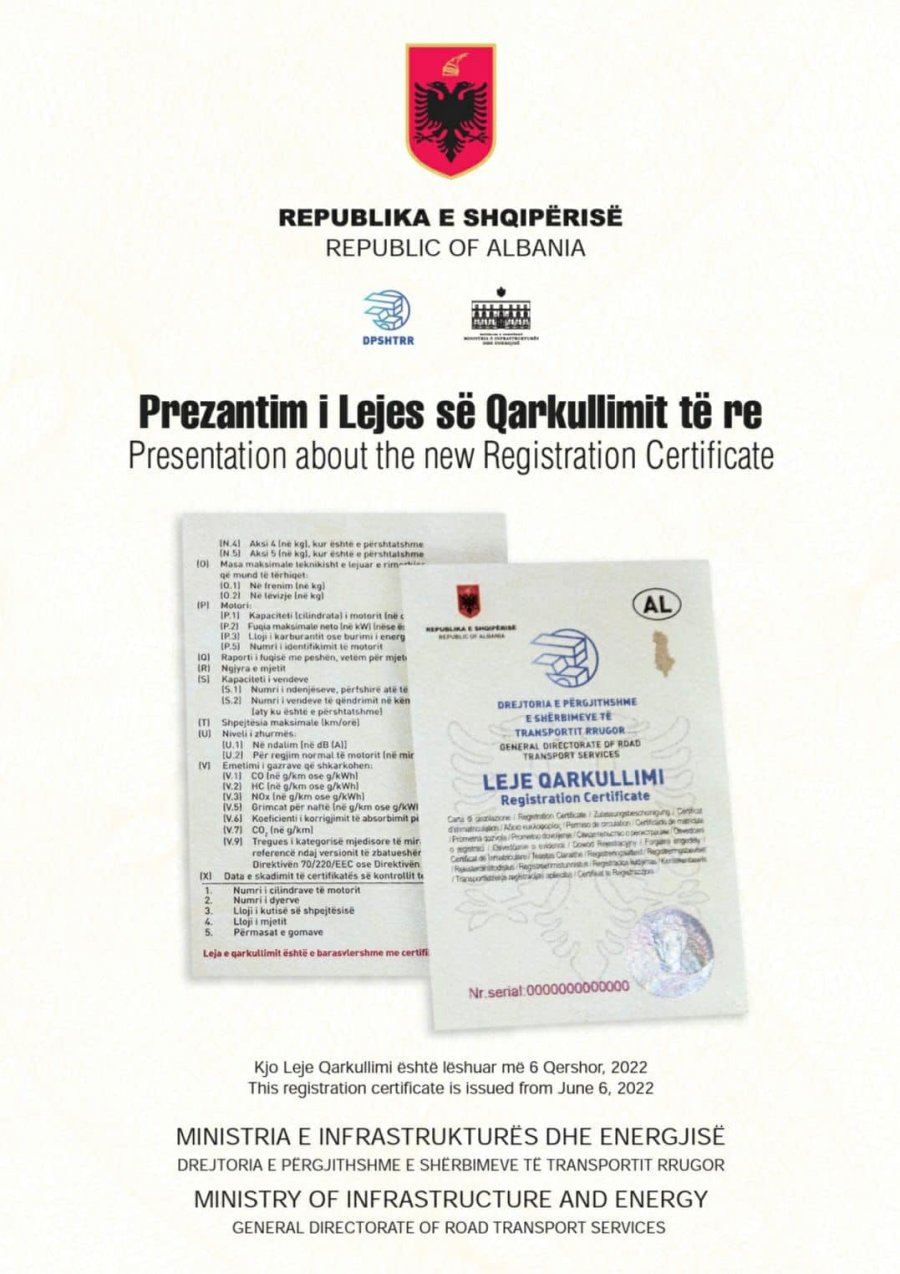 Duke filluar nga dita e hënë, më 6 qershor, do të aplikohet formati i Lejes së re të Qarkullimit të mjetit ku janë shtuar elementët e sigurisë duke eliminuar mundësitë e manipulimit të të dhënave.