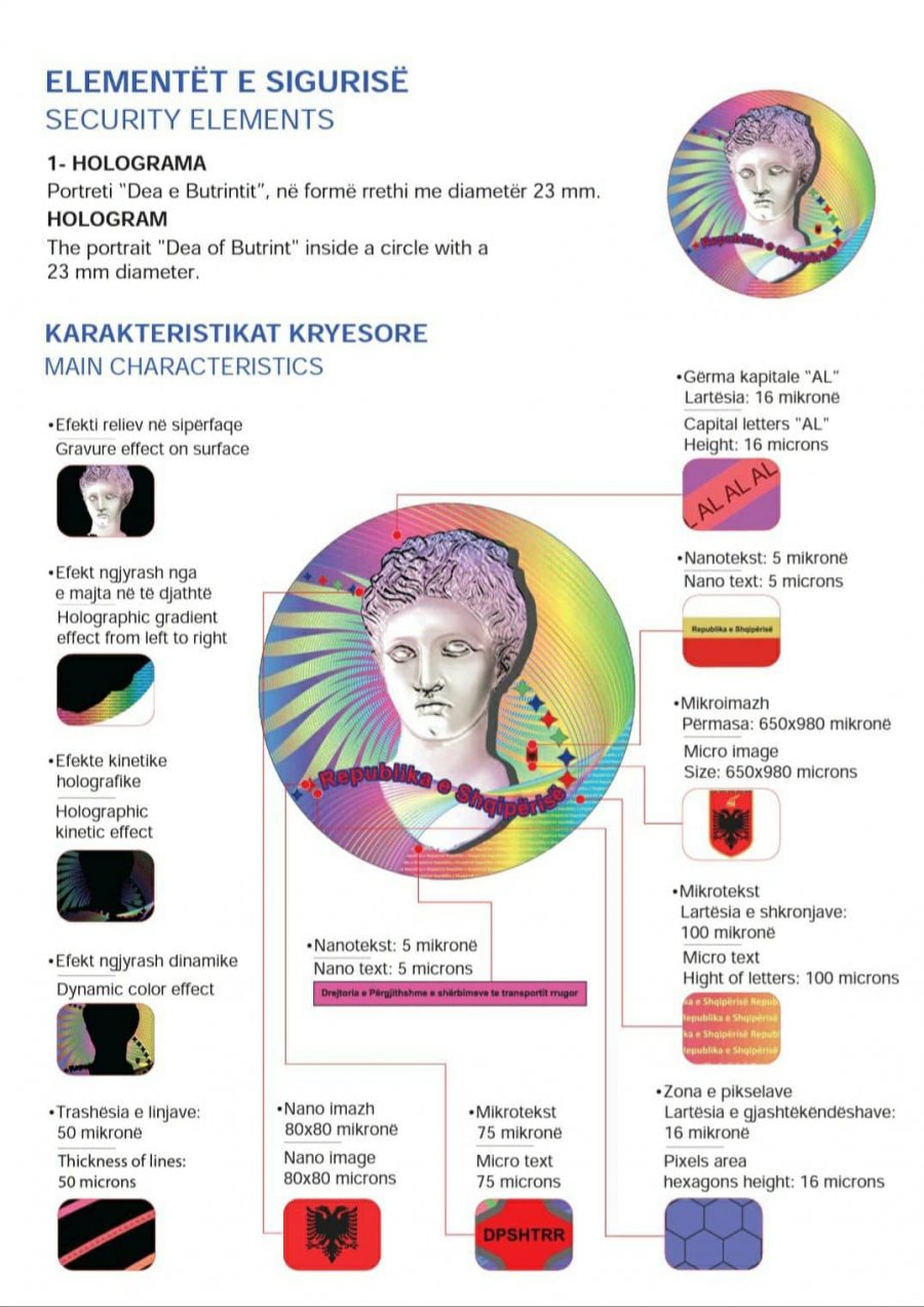 – Leja e re do ketë edhe QR code drejtpërdrejt nga sistemi e DPSHTRR, mikrotekst, vizatim e grafika që ndryshojnë ngjyrën në këndvështrime të ndryshme drite, etj!