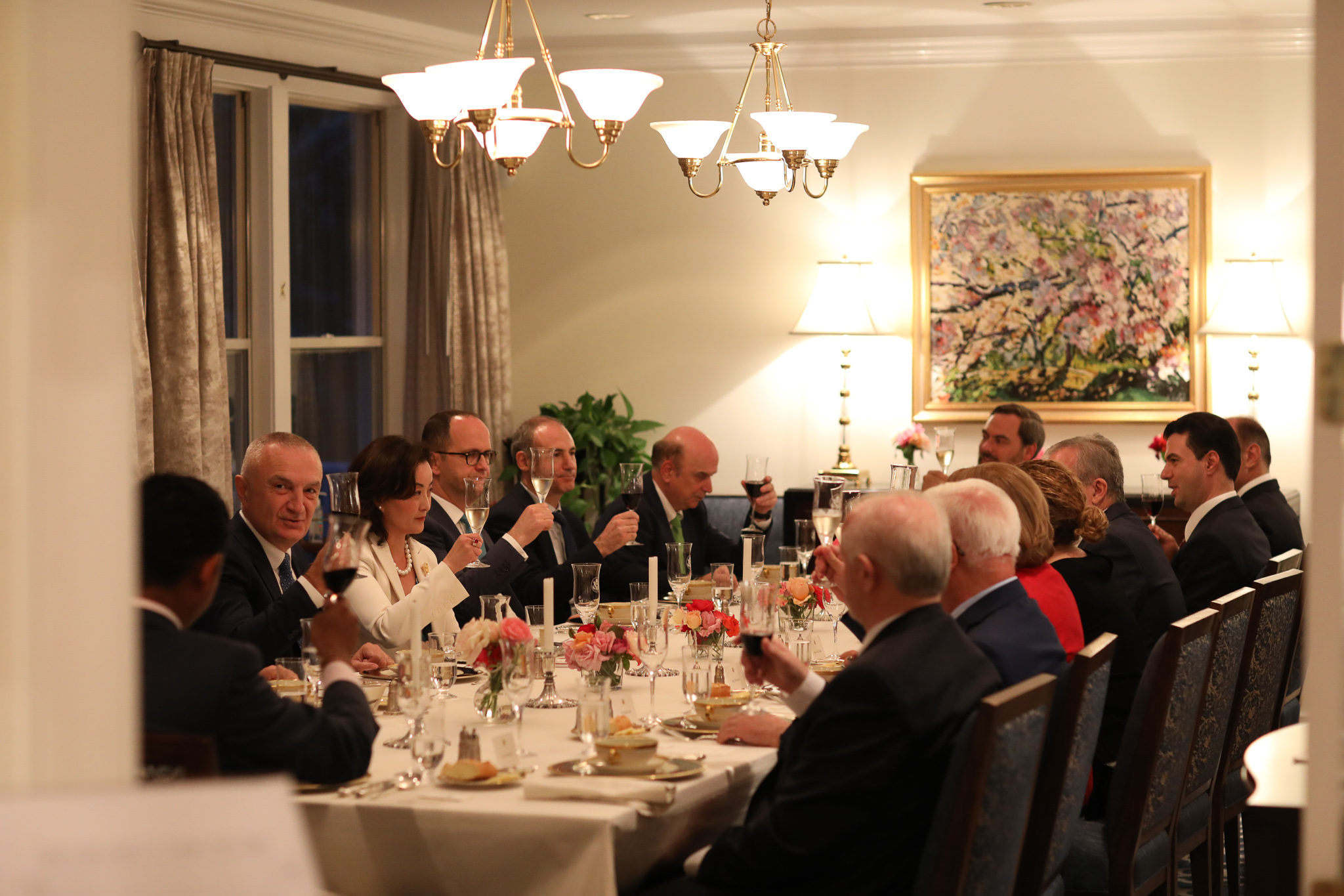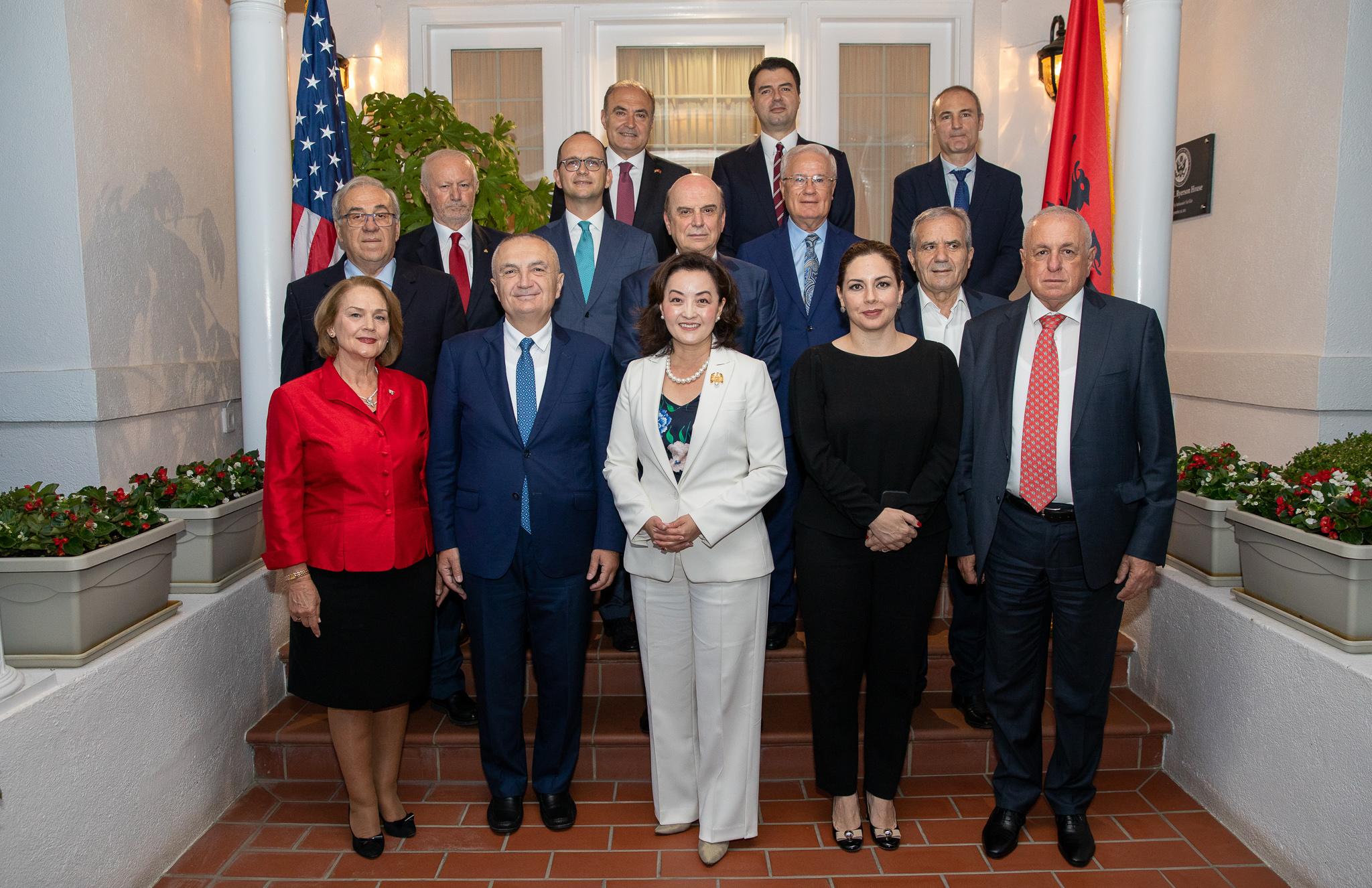 Si pjesë e festimeve tona për 100 vjetorin e marrëdhënieve diplomatike midis Shteteve të Bashkuara dhe Shqipërisë, Ambasadorja Yuri Kim pati nderin të ftojë të gjithë Ministrat e Jashtëm të Shqipërisë që prej vitit 1991, për një darkë të veçantë në Shtëpinë Ryerson.