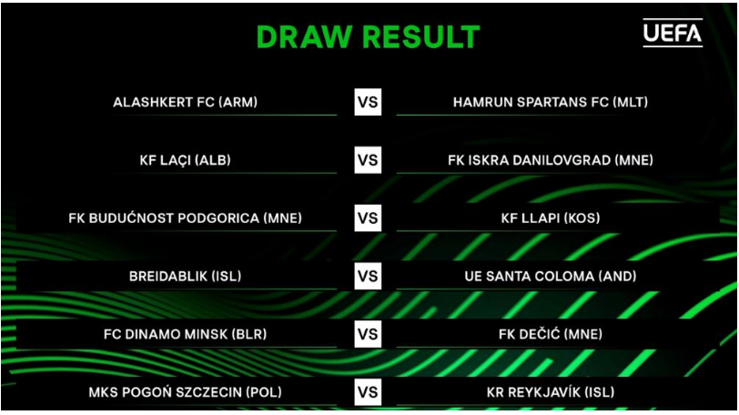 Laçi në këtë tur do të përplasë “brirët” me skuadrën e Malit të Zi, Iskra Danilovgrad, ku sfida e pare luhet në Shqipëri më 7 korrik dhe tjetra në transfertë më 14 korrik.