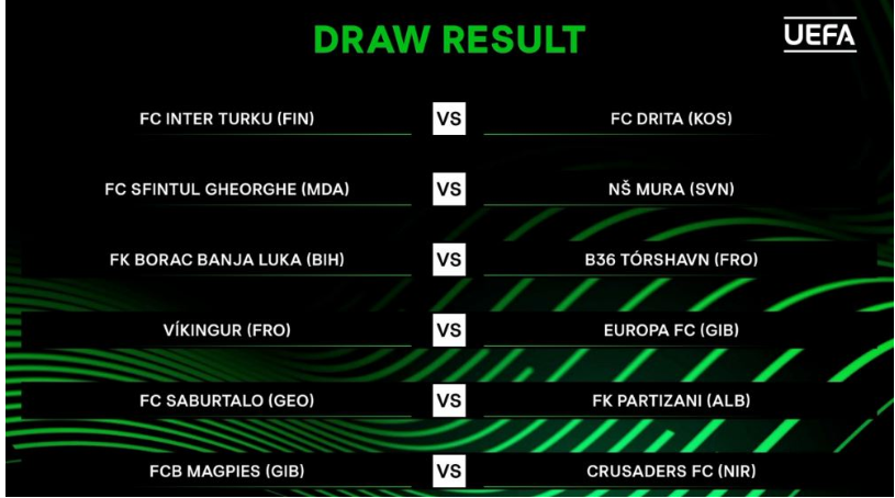 Partizani do të përballet me Saburtalo, skuadër nga Gjeorgjia, teksa demat ishin me fat pasi shmangën skuadra më të forta në grup. Sfidën e parë “Të Kuqtë” do ta luajnë në transfertën e largët më 7 korrik, ndërsa atë të kthimit më 14 korrik në Shqipëri.