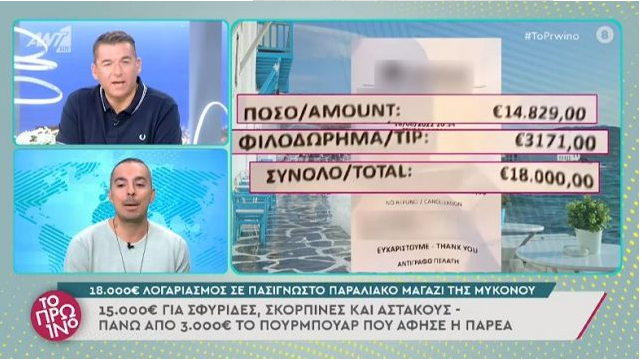 Llogaria jashtëzakonisht e madhe e një restoranti në Mykonos, ka lënë punonjësit të habitur pas një bakshishi tepër të lartë.