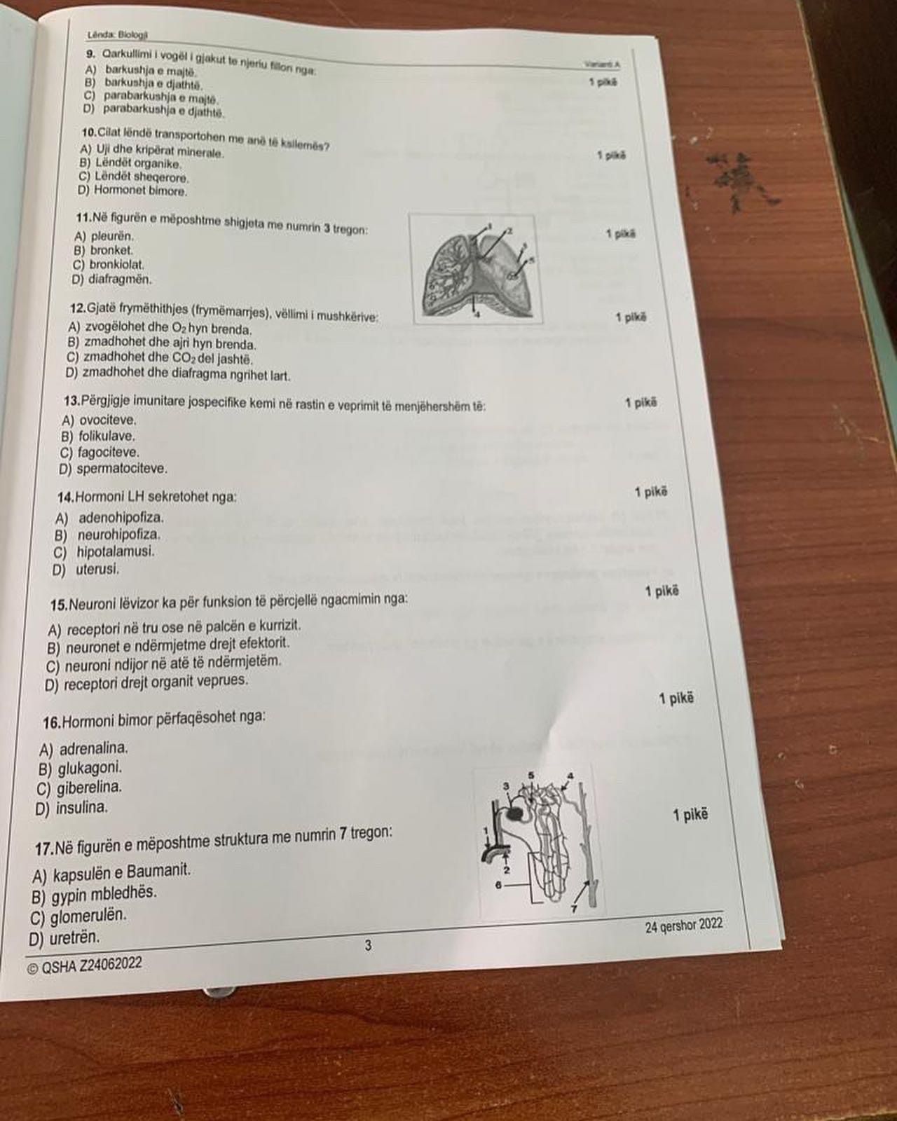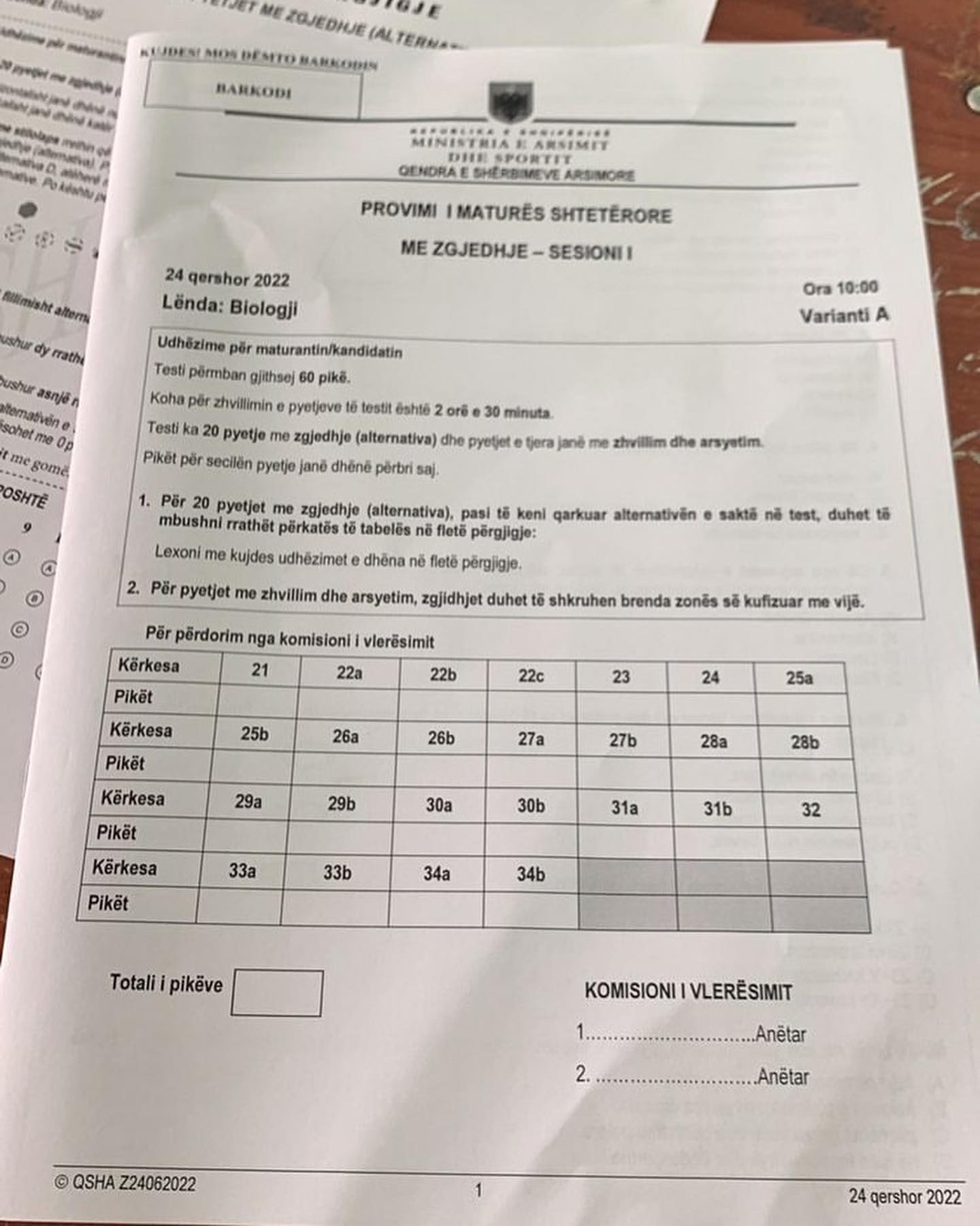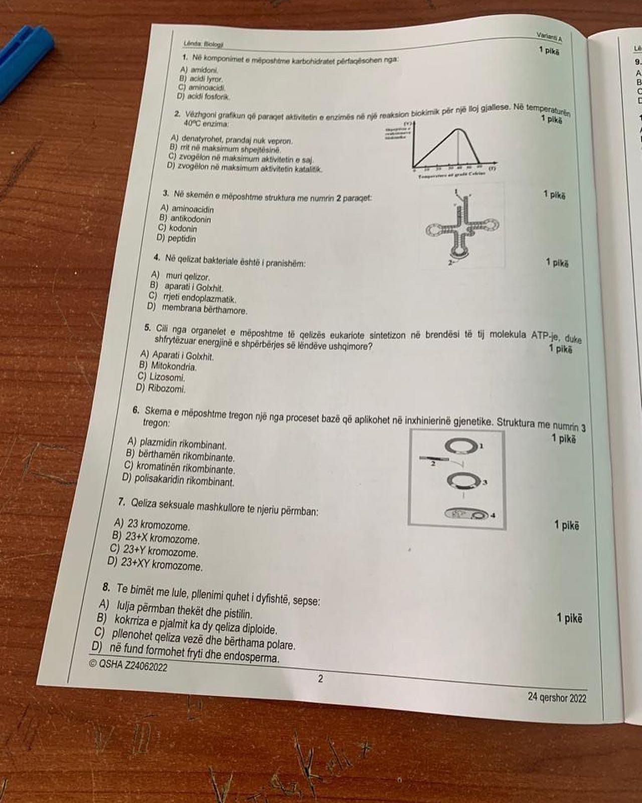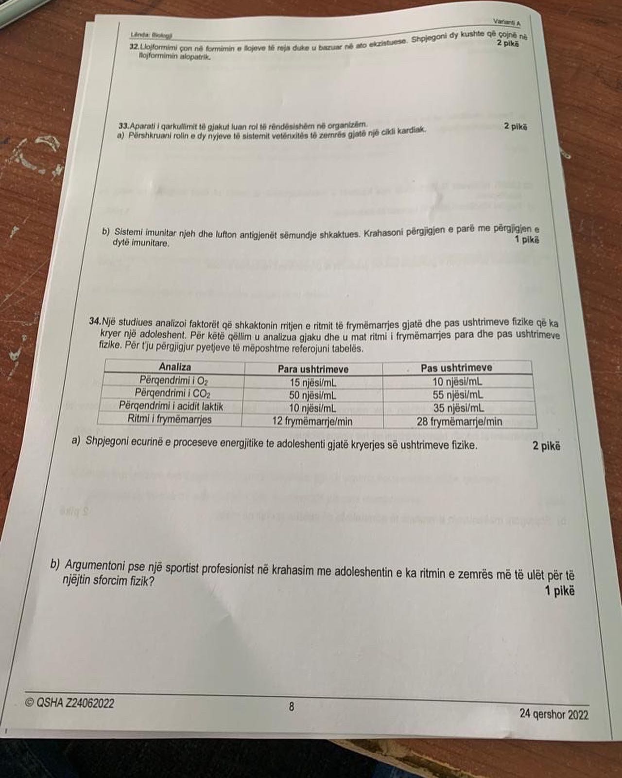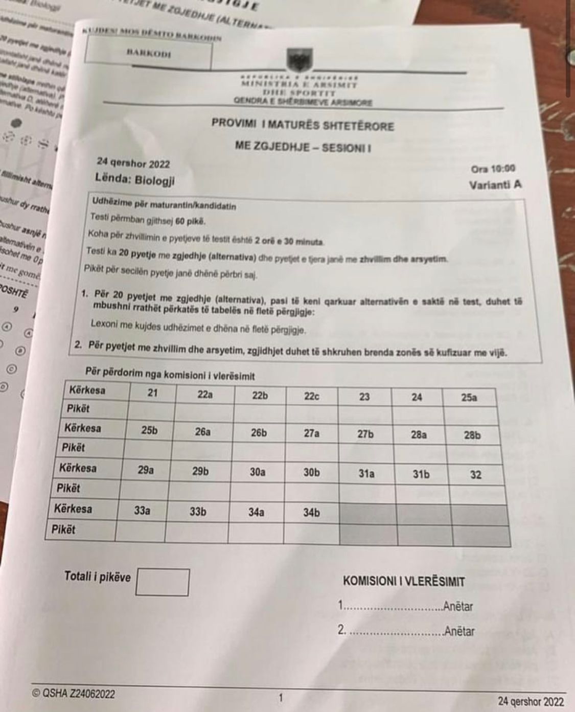 Teza e lëndës së Biologjisë dhe Fizikës është publikuar në rrjet, duke konfirmuar edhe njëherë dështimin për sigurimin e një testimi në kushte të barabarta për maturantët.