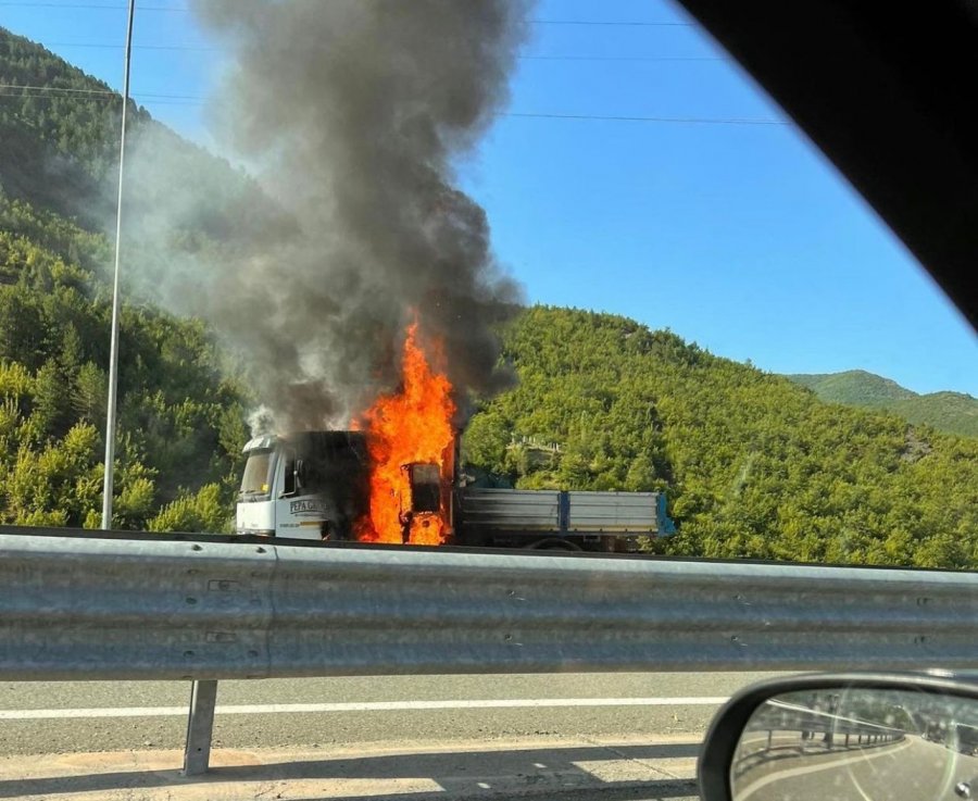 Mësohet se kamioni është përfshirë nga flakët në ecje.