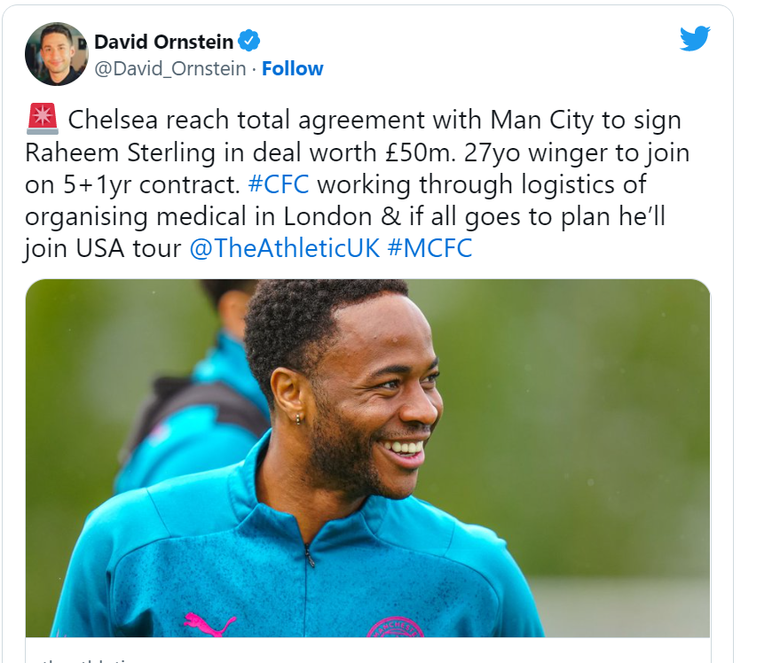 Londinezët do të paguajnë 50 milionë paund te Manchester City, ndërkohë që me lojtarin do të nënshkruhet një marrëveshje 5+1 vjeçare.
