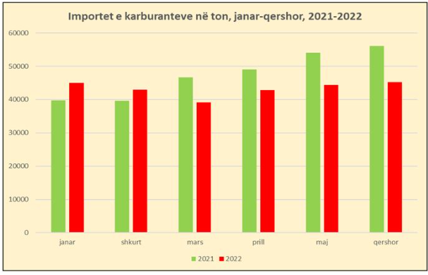 Sipas të dhënave të doganave, në qershor, importet e karburanteve arritën në 45.2 mijë ton, duke shënuar një prënie prej 19.3% në krahasim me të njëjtën periudhë të një viti më parë.