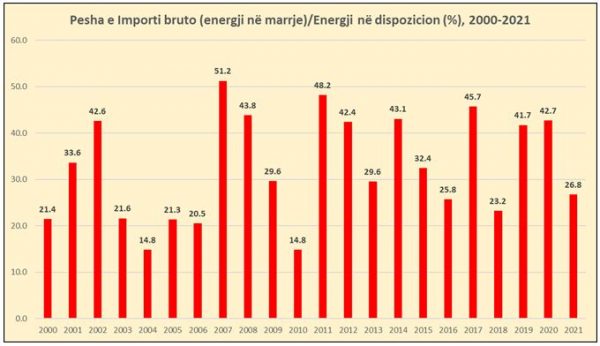 Në ditët më të mira, Shqipëria importon minimalisht 20% të nevojave të saj për energji, sipas INSTAT, ndërsa në periudha thatësire importi arrin deri në 50%.